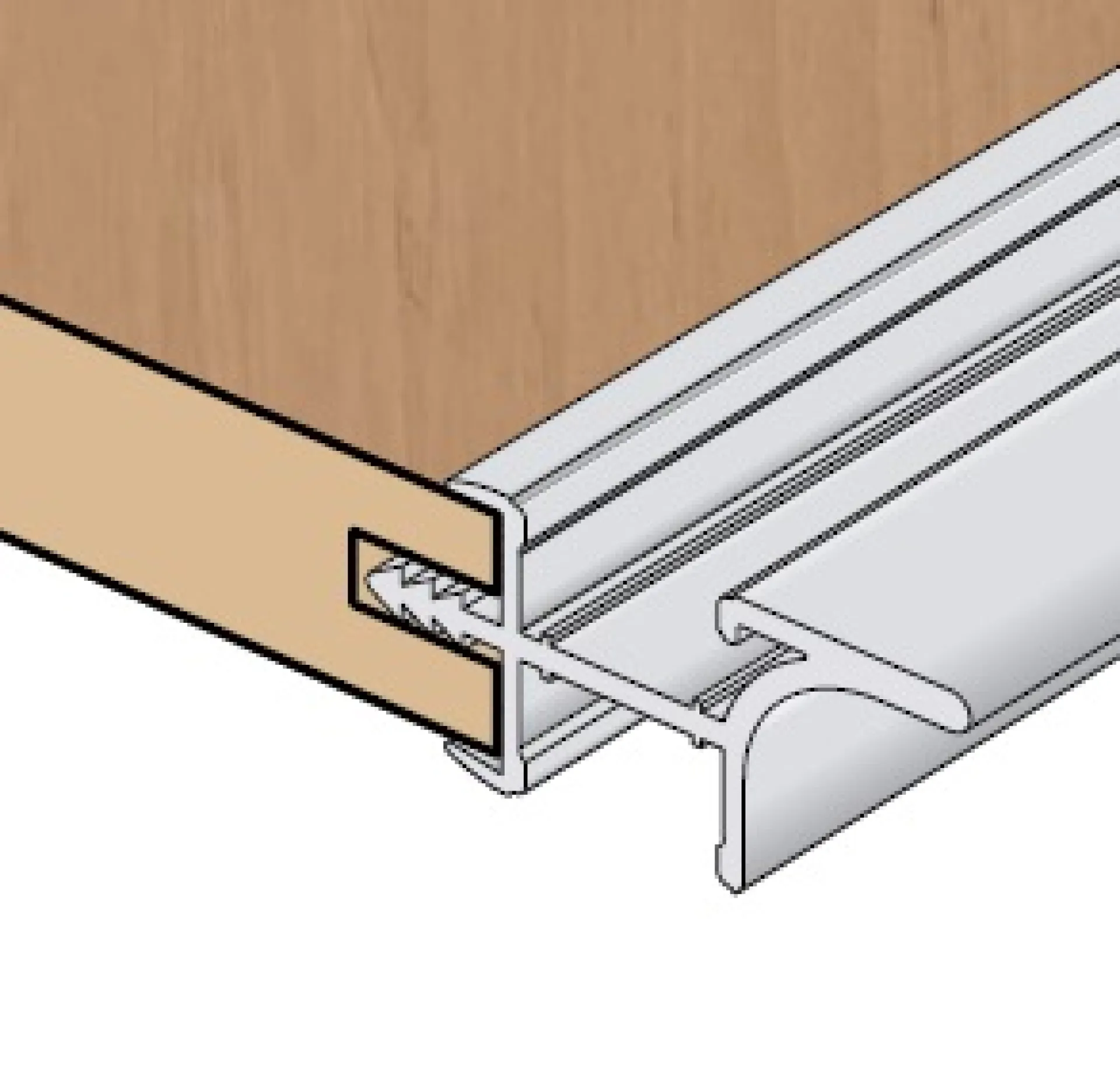 Úchytkový profil UK20 Doppel pre odsadenie dvierok. Montáž do spodného dna. Profil obsahuje dve drážky pre led pás + dva mliečne difúzory.
