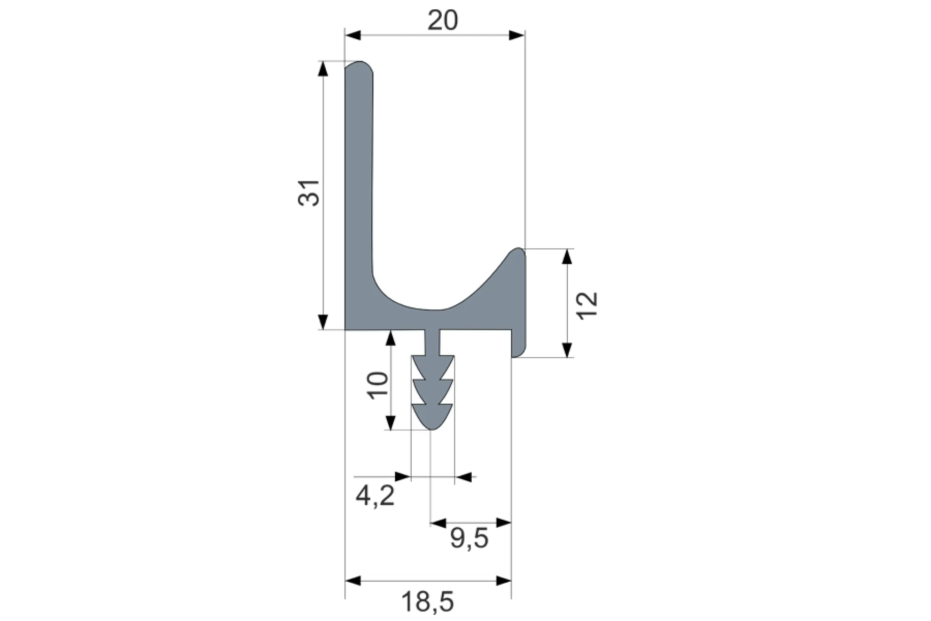 Úchytkový profil UK5 pre osadenie do hrany dvierok.