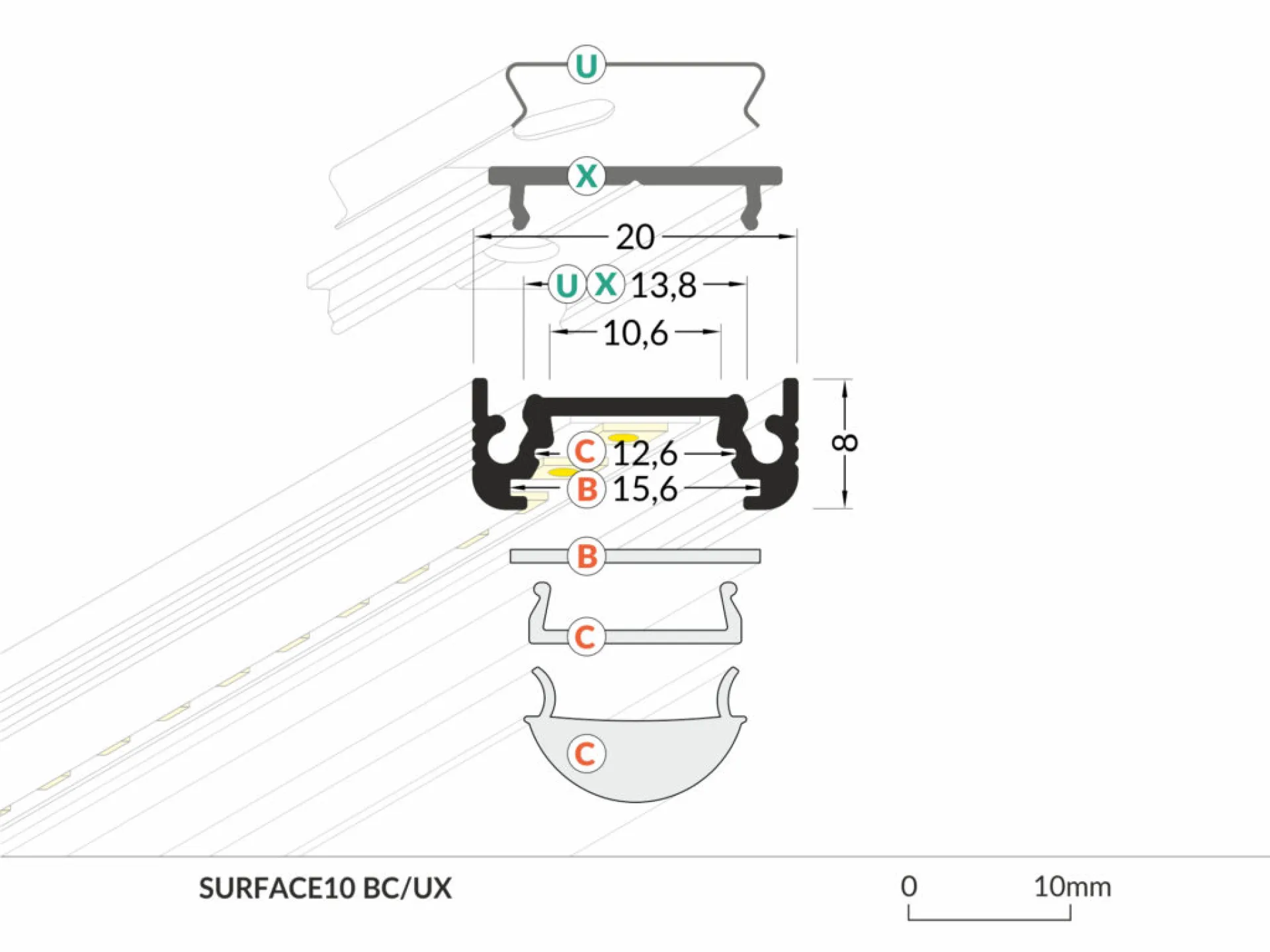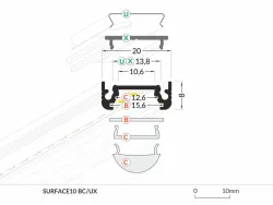 Hliníkový profil k povrchovej montáži. Povrchová úprava - biela. Určený pre LED pásiky o max. šírke 10mm. Dĺžka 4000mm. Krycie lišty (typ C) a koncovky nie sú súčasťou balenia, je potrebné ich zakúpiť samostatne.