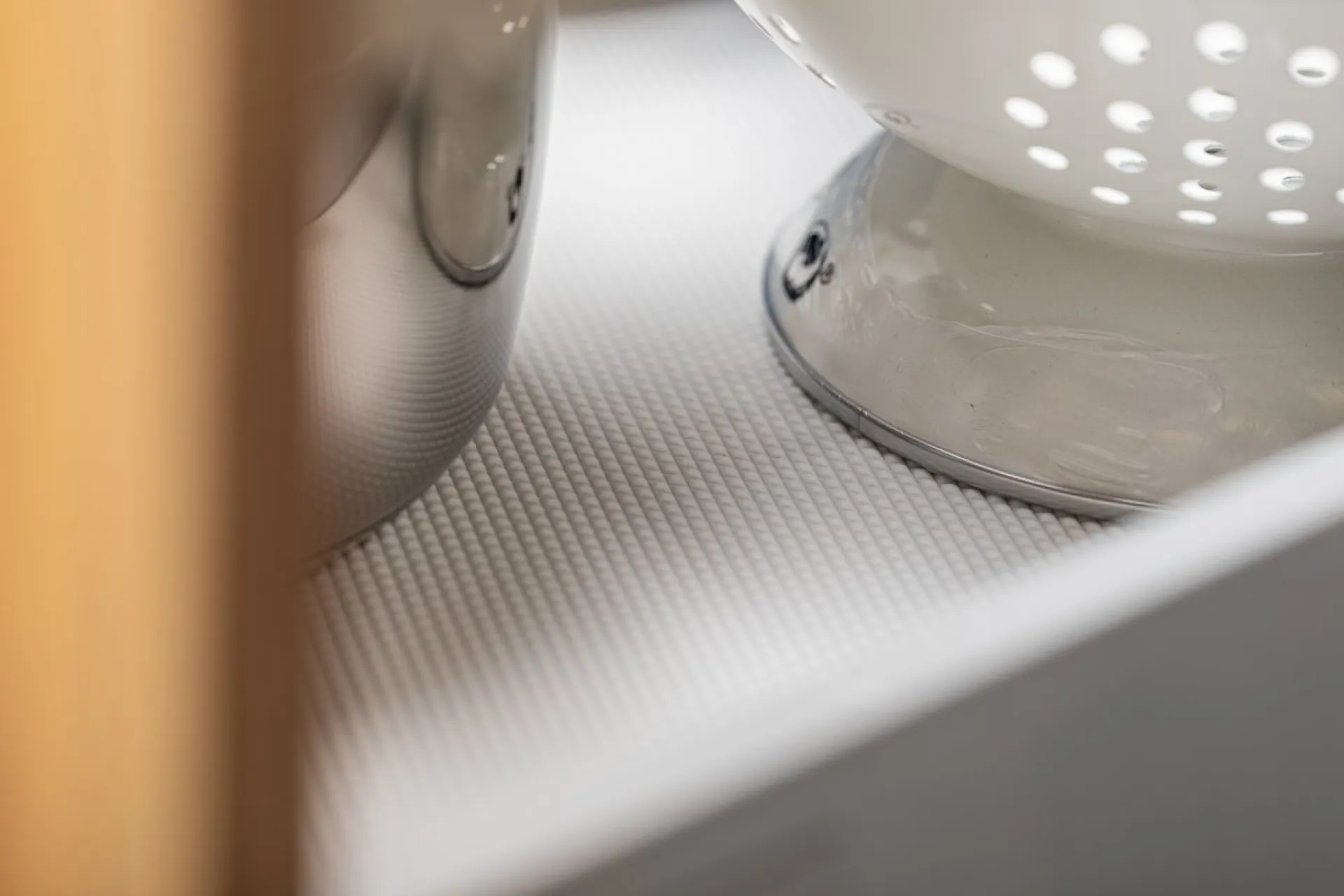 Protišmykovú podložku je možné použiť v rôznych skrinkách a zásuvkách. Šírka podložky je 480 mm a jej dĺžka je 5000 mm, ale je možné ju narezať na akúkoľvek veľkosť. Protišmykový povrch zabraňuje pohybu objektov.