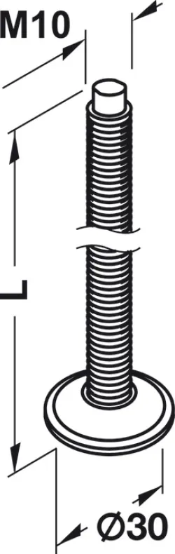 Rektifikačná noha so závitom M10. Dĺžka 90 mm.