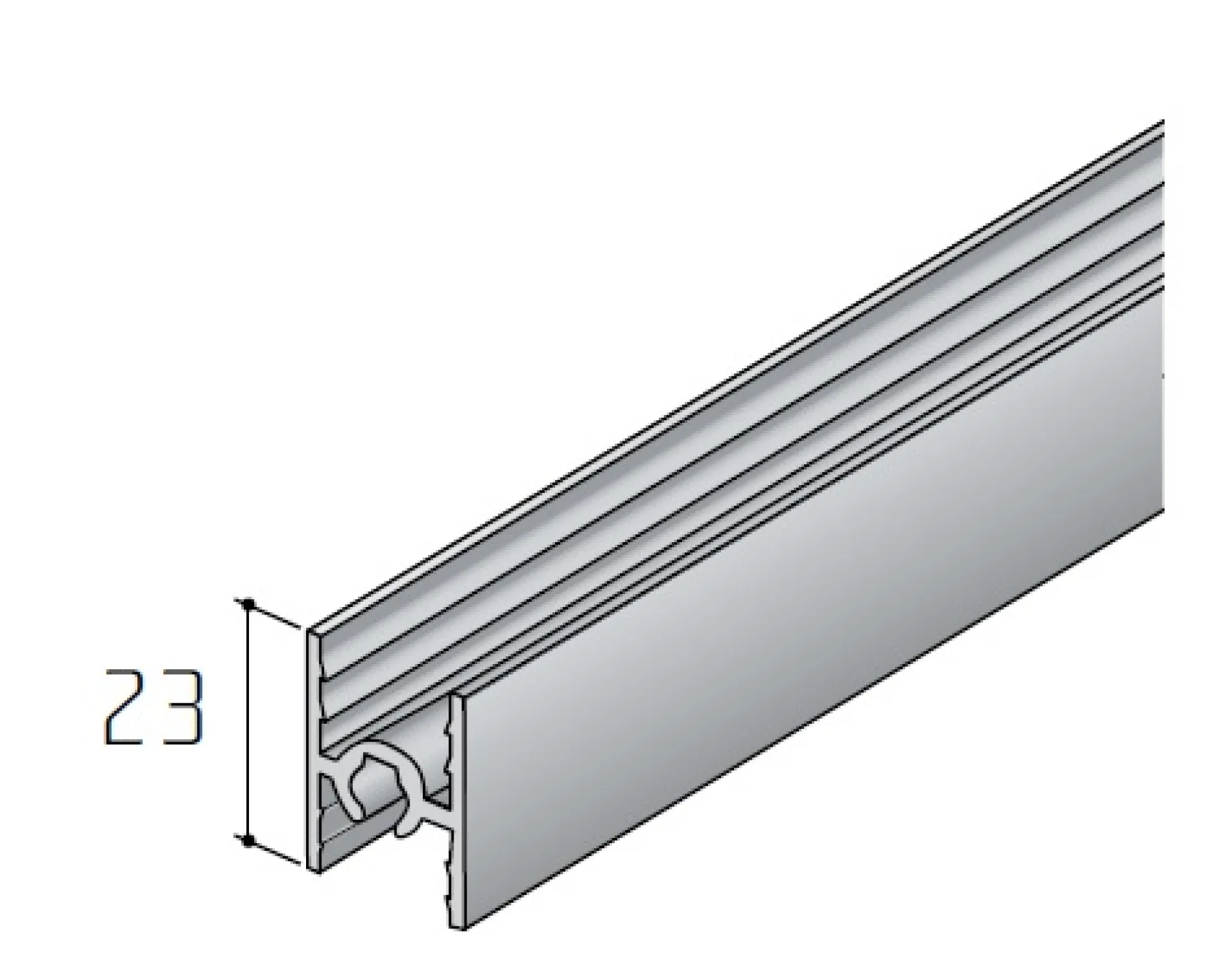 Priečka systému S55. Duálne použitie ako horná koncová priečka aj stredová priečka na spojenie skla a drevotriesky.