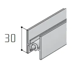 Priečka systému S65. Duálne použitie ako horná koncová priečka aj stredová priečka na spojenie skla a drevotriesky.