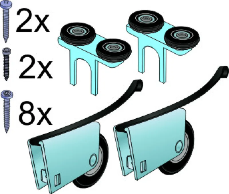 Sada vozíkov na jedny dvere. Vhodné na rámový systém S65 k madlám S19.