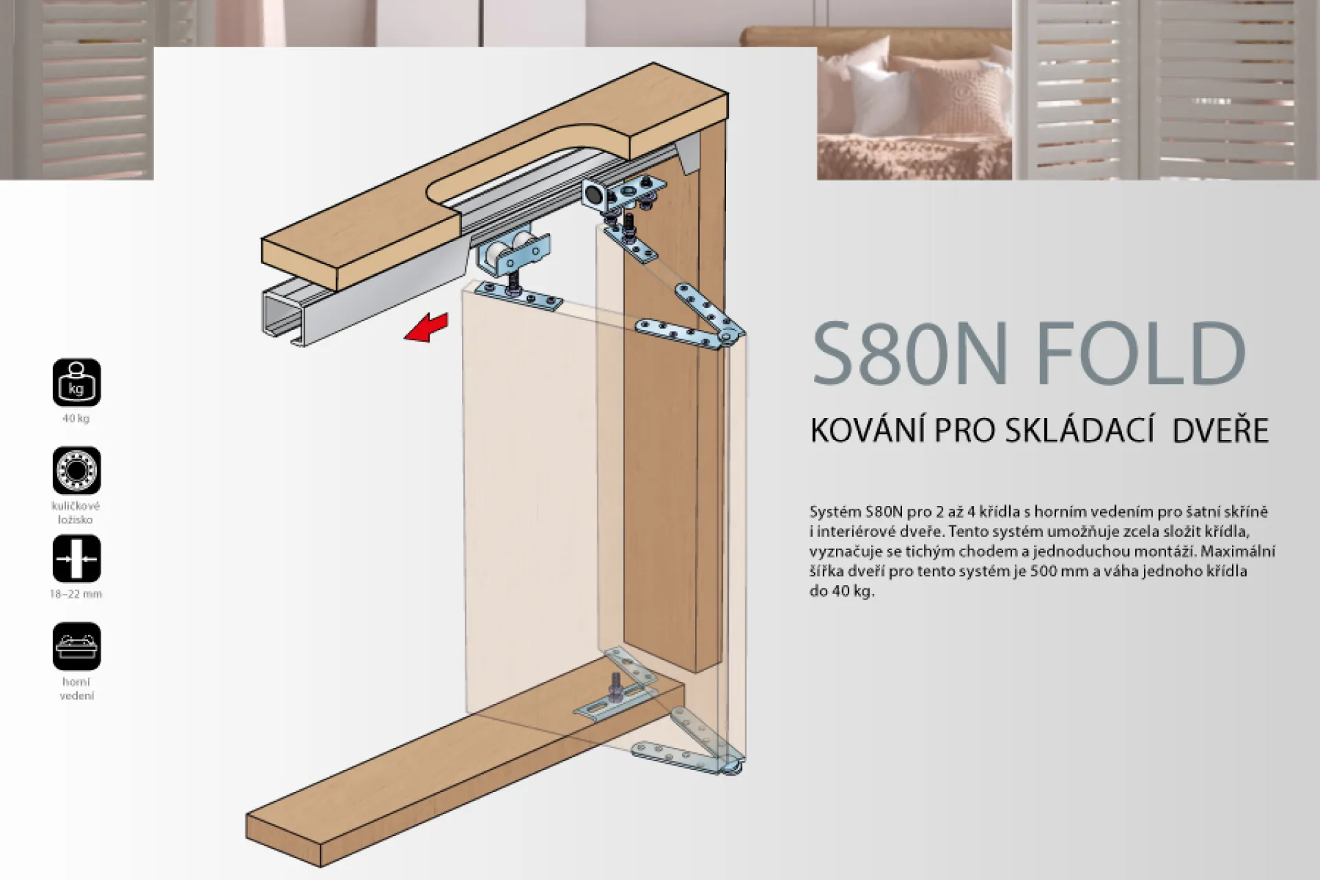 Sada vozíkov pre skladacie dvere. Vhodná k vodiacenu profilu S80N.