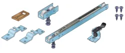 1x horný vozík, 1x horný vozík s tlmením, 1x dorazová brzda, 1x dolný tŕň, skrutky