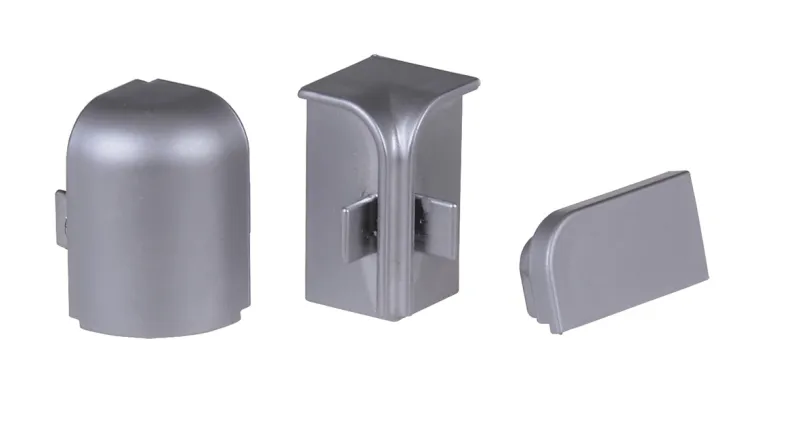 1x roh vonkajší 90°, 1x roh vnútorný 90°, 2x koncovka