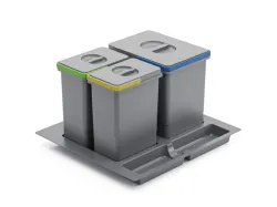 Triedič obsahuje 1 nádobu s objemom 15 litrov a 2 nádoby s objemom 7 litrov, čo umožňuje praktické a prehľadné nakladanie s odpadom.
