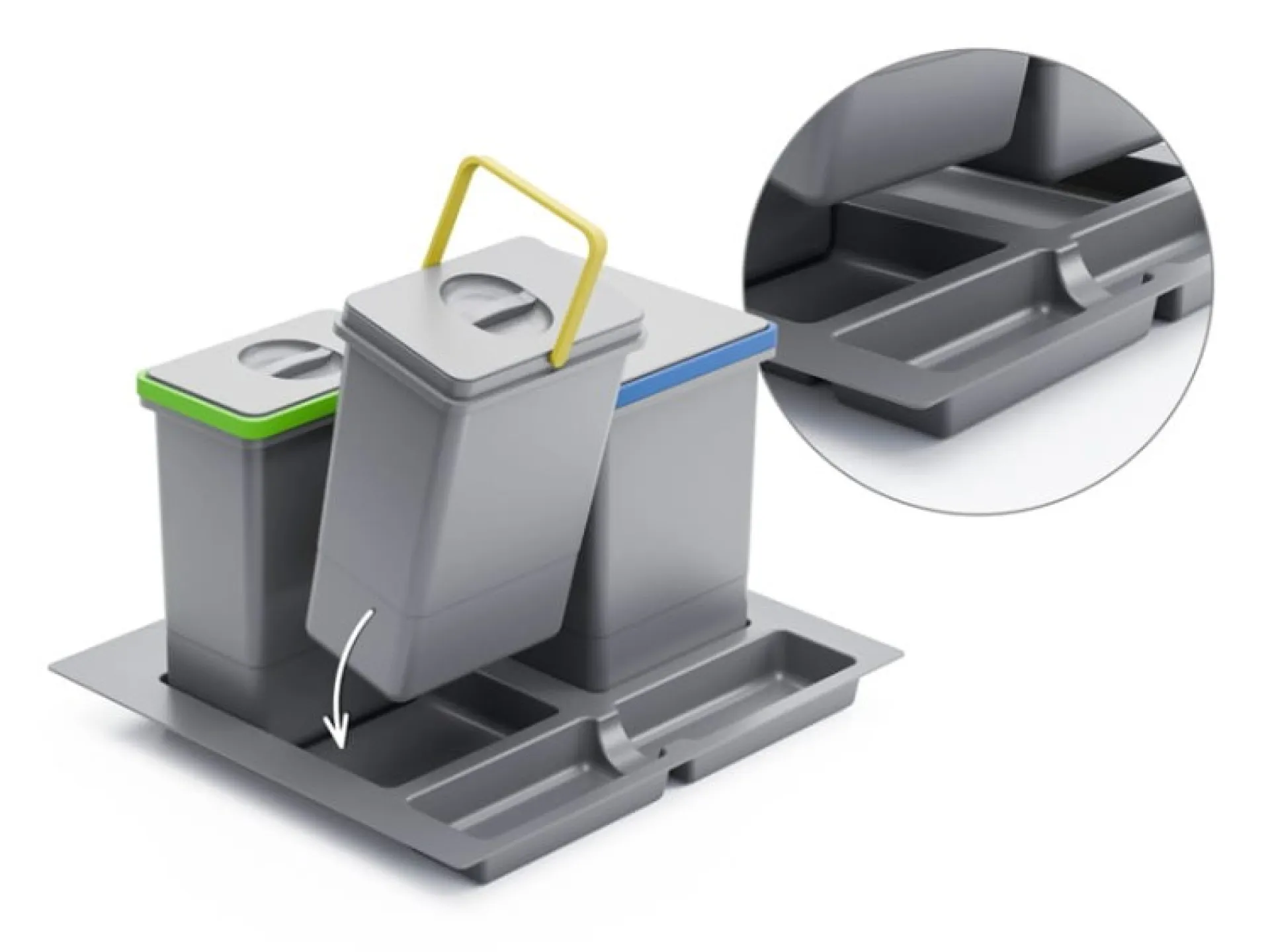 ☛ Jednoduché triedenie odpadu – každá nádoba má rúčku inej farby