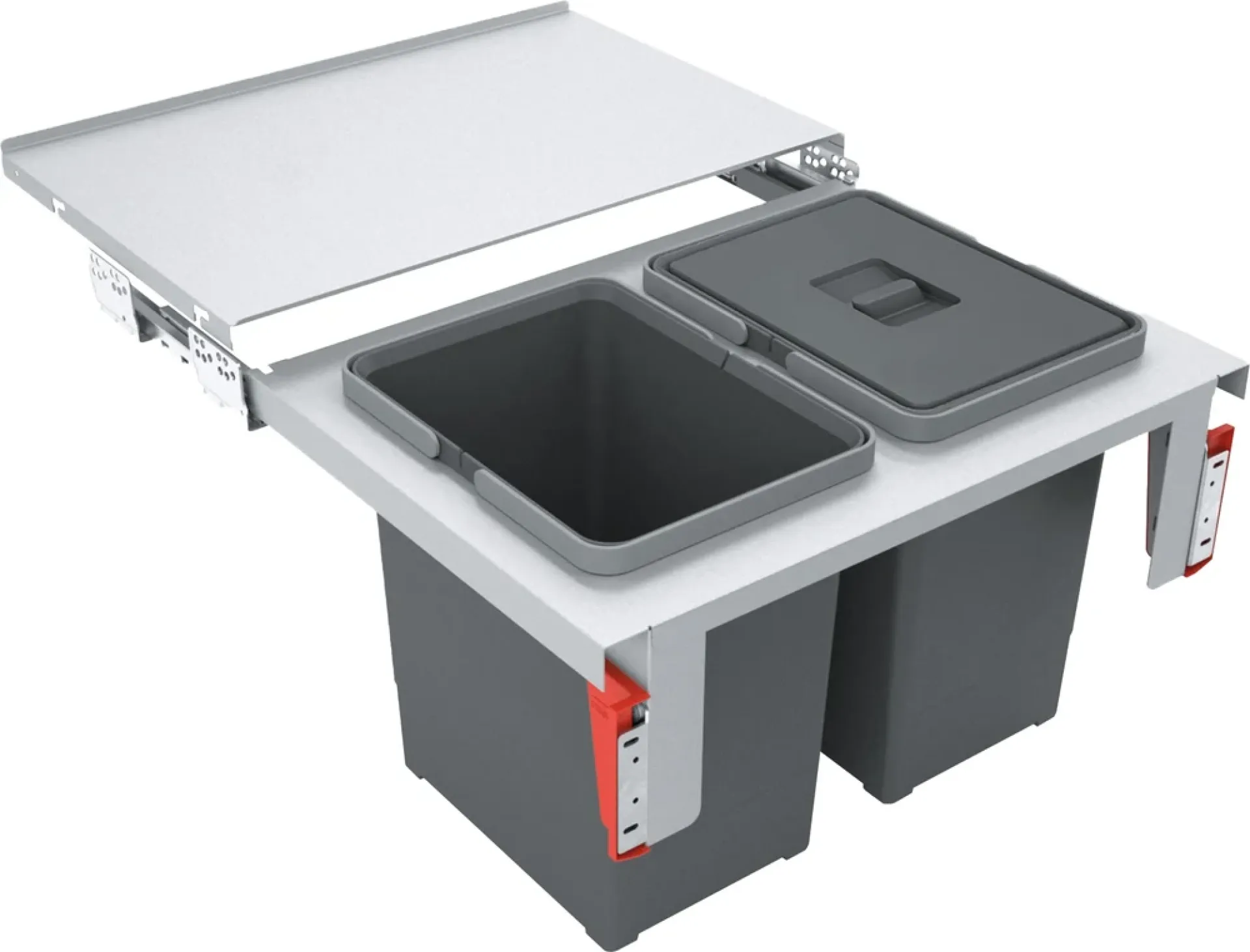 Oba 18-litrové koše sú vybavené praktickou kovovou poličkou a jedna z nich je navyše dodávaná s vekom. Toto vám umožní ľahké triedenie odpadu a zároveň udržiavanie kuchyne v čistote.