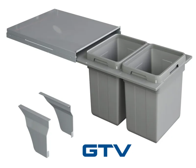 Plastový odpadkový 2-kôš Elegance na separáciu a triedenie domáceho odpadu do korpusu 400 mm so zásuvkou GTV Modern Box.