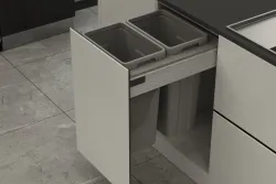 Po inštalácii do korpusu a po vysunutí sú nádoby koša plne vyberateľné. Kvalitný plastový rám dodáva systému vysokú odolnosť a výsuv umožňuje úplné vysunutie aj hladké zatvorenie systému.