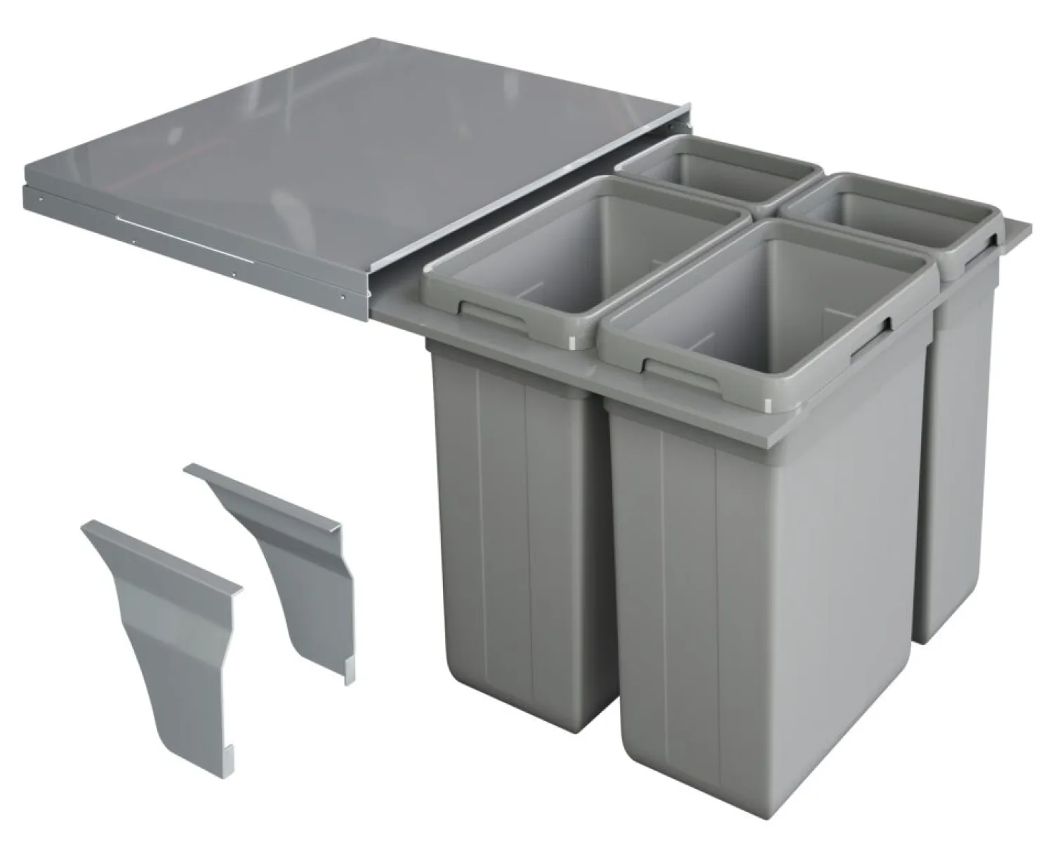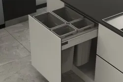 Systém má dve 27-litrové a dve 9-litrové nádoby a je vybavený pevným oceľovým vekom, ktoré okrem zakrytia košov slúži aj ako polica vo vnútri korpusu na uloženie ľahkého príslušenstva.