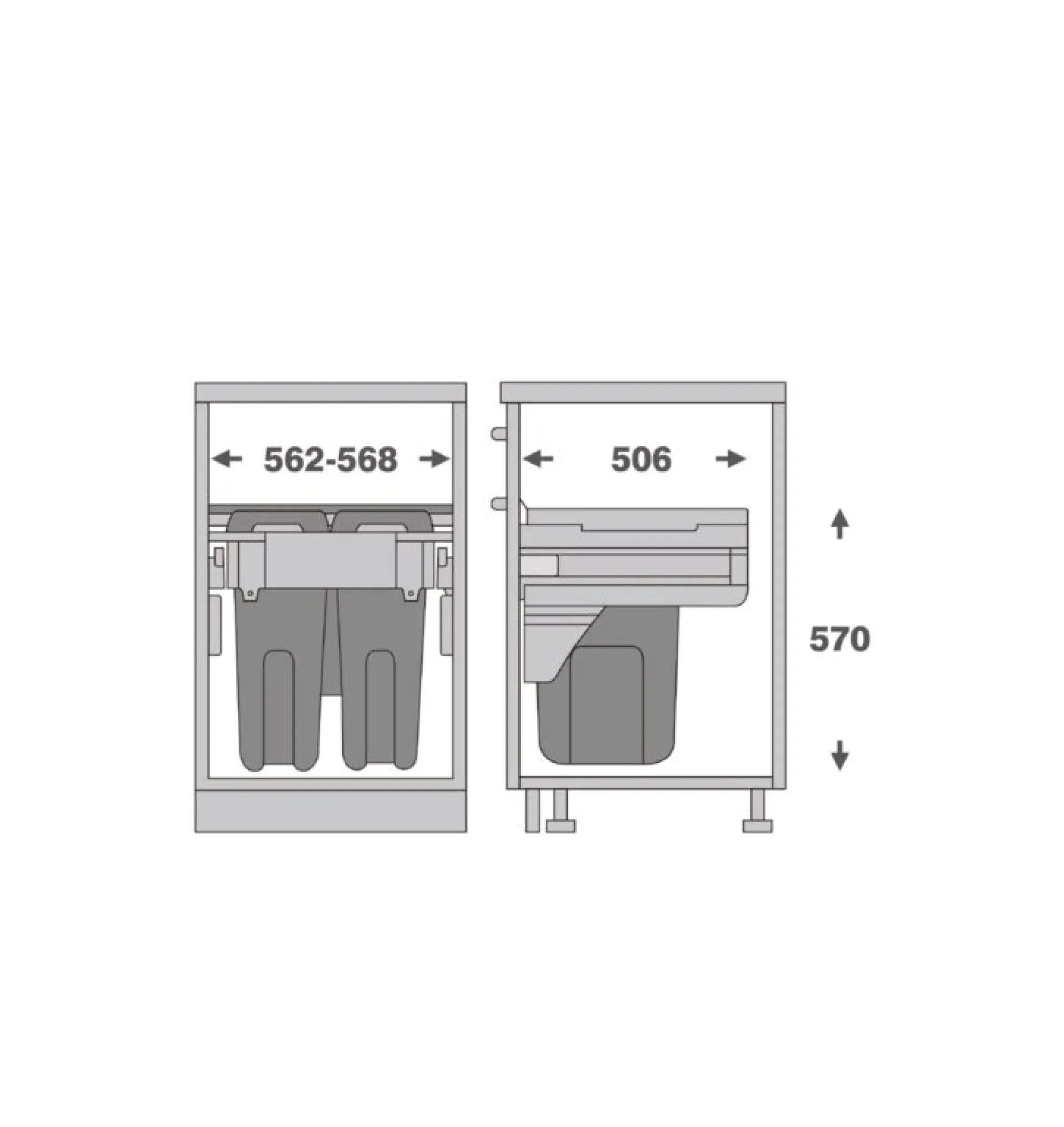 Plastový odpadkový 2-kôš Elegance na separáciu a triedenie domáceho odpadu do korpusu 600 mm so zásuvkou Blum TANDEMBOX antaro.