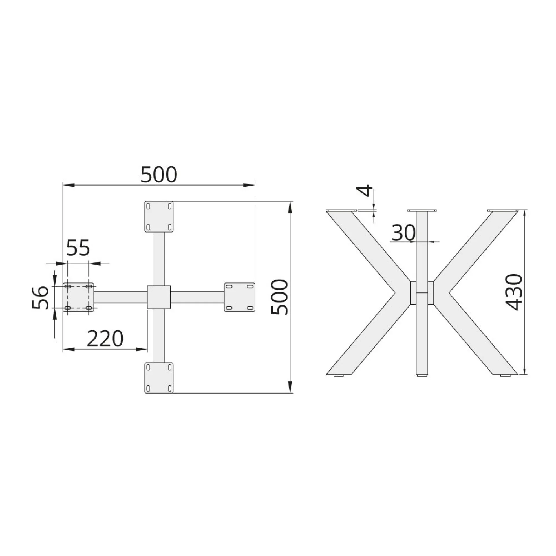 ☛ Rozstup základne: 500 × 500 mm