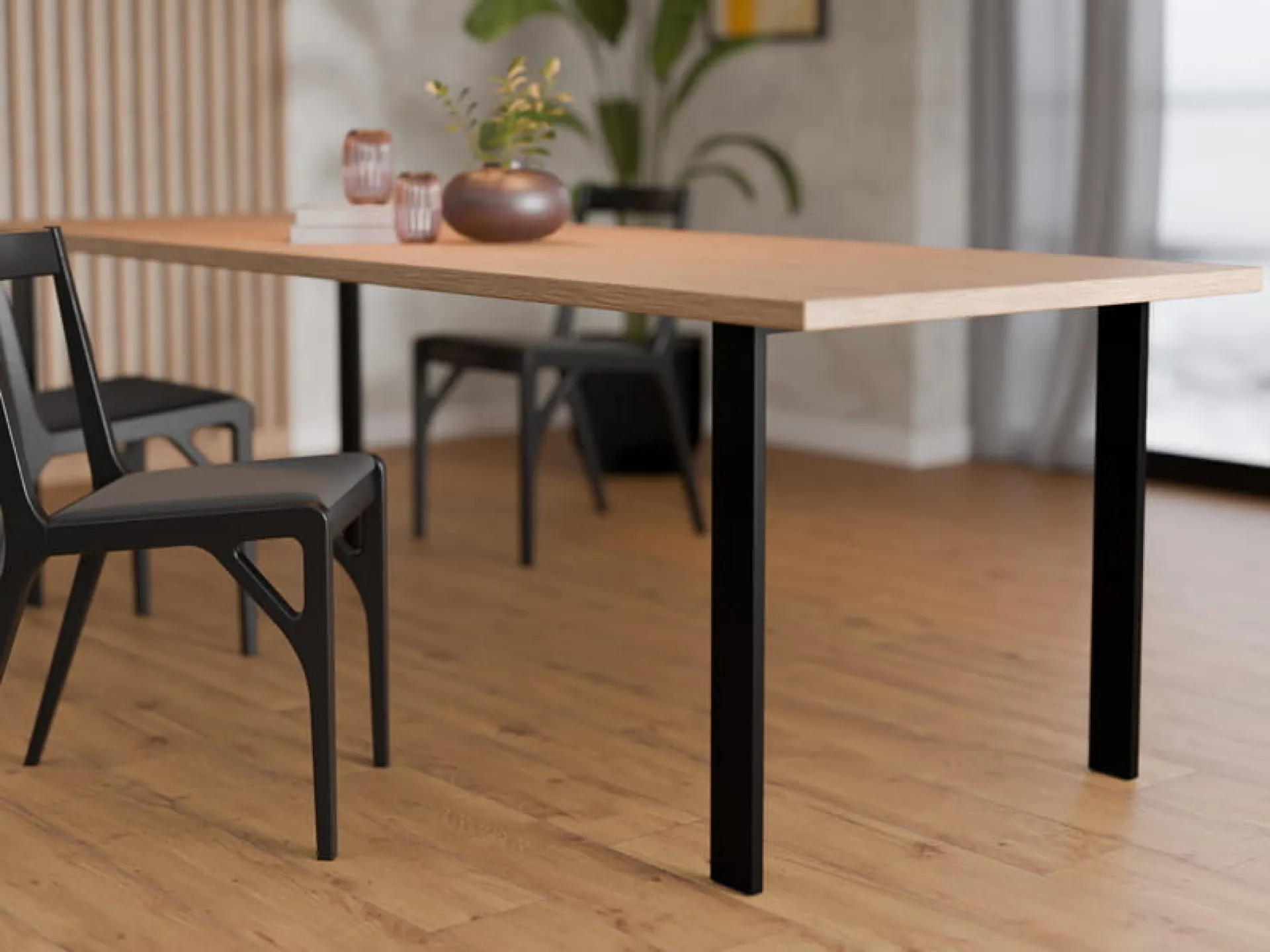 Stolová noha DN-973A je príkladom surovej industriálnej estetiky. Jednoduchý, geometrický tvar nepôsobí rušivo v žiadnom interiéri a hlboká čierna matná farba výborne ladí s materiálmi ako drevo, betón, sklo či kov. Je ideálnym doplnkom do domácich, kancelárskych aj komerčných priestorov. Vďaka pevnej konštrukcii a minimalistickej forme dodá stolová noha DN-973A každému kusu nábytku moderný charakter na dlhé roky.