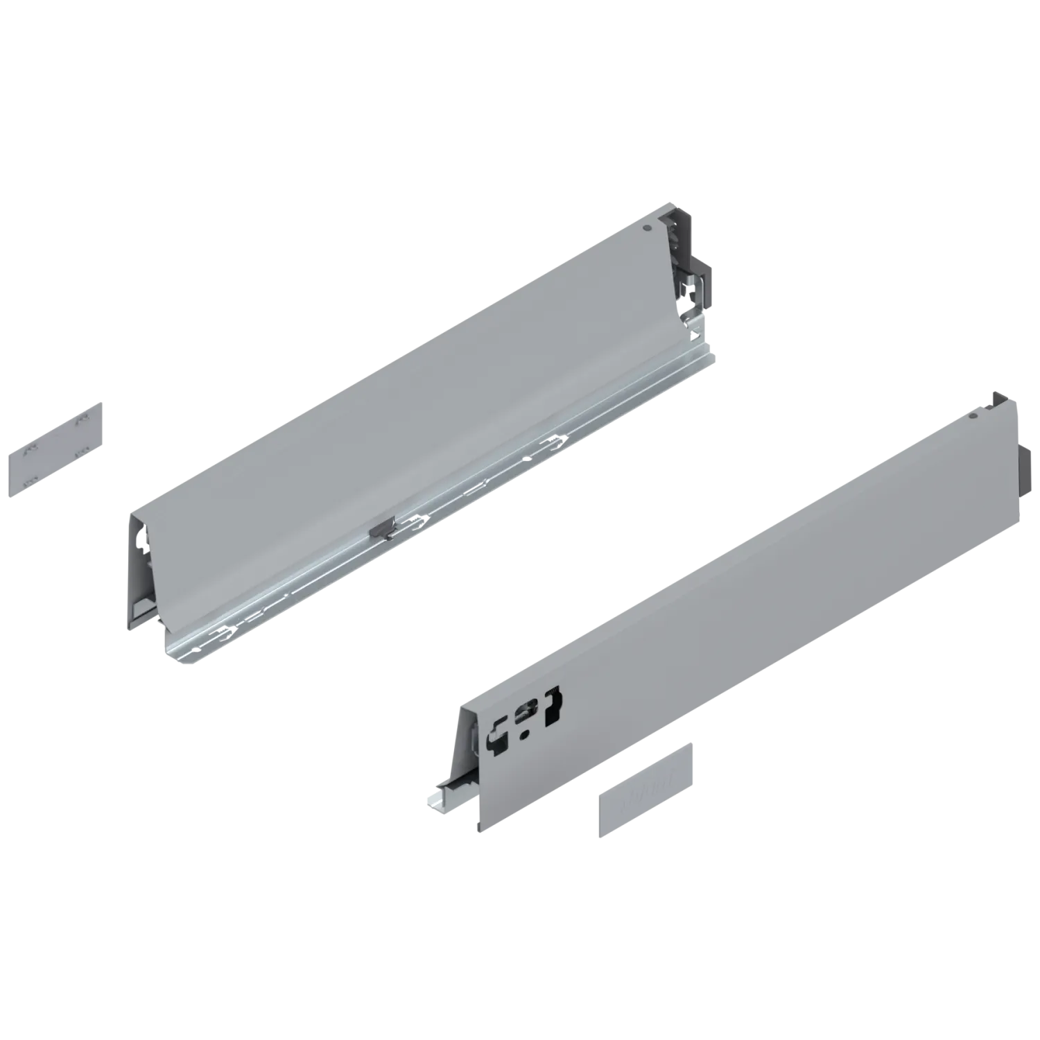 Komplet je určený pre hĺbku korpusu 450 mm a výšku zásuvky M, vhodný do nízkych priestorov. TANDEMBOX antaro sa vyznačuje jednoduchou montážou, presným vedením a spoľahlivou funkčnosťou.