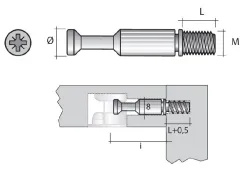 Rozmery: M = 7 mm, I = 34 mm, L = 11 mm, eurozávit, priemer vrtania 5mm. Vhodné ku excentrom D-229902 a D-518086