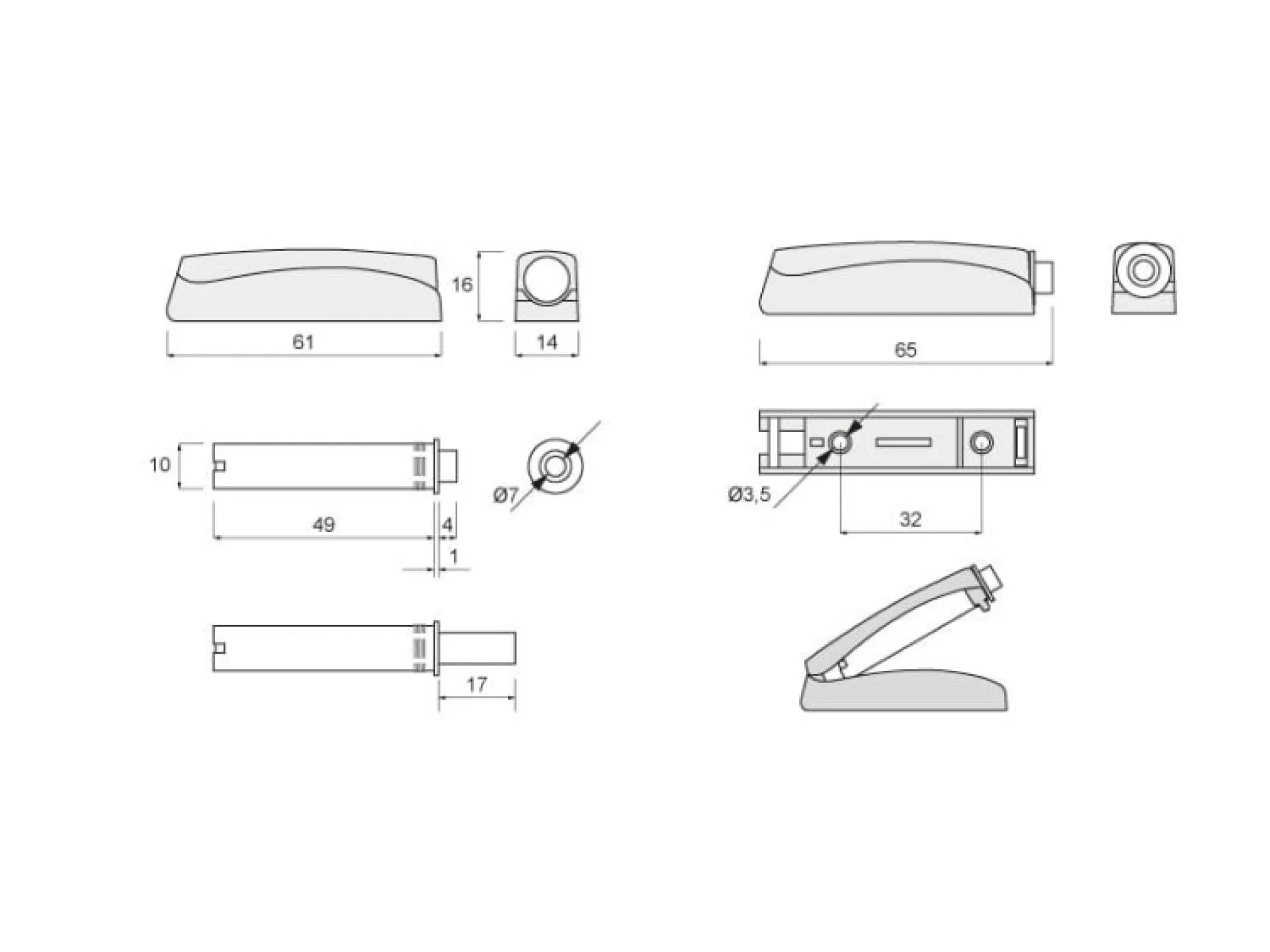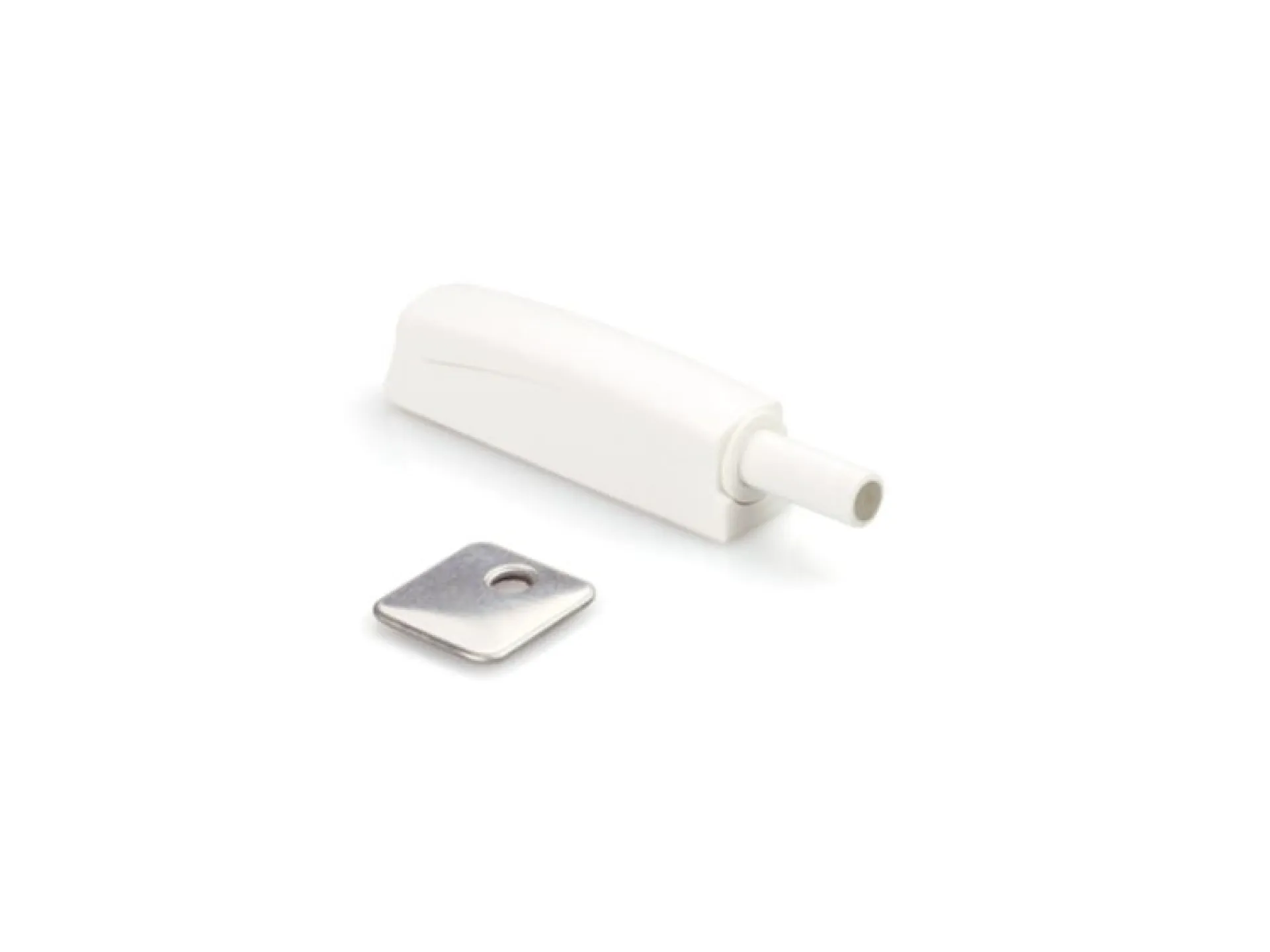 Nábytkový piest PG-040 (61×14×16 mm) biely, s magnetickou koncovkou a adaptérom – Ideálny pre bezúchytkové čelá nábytku