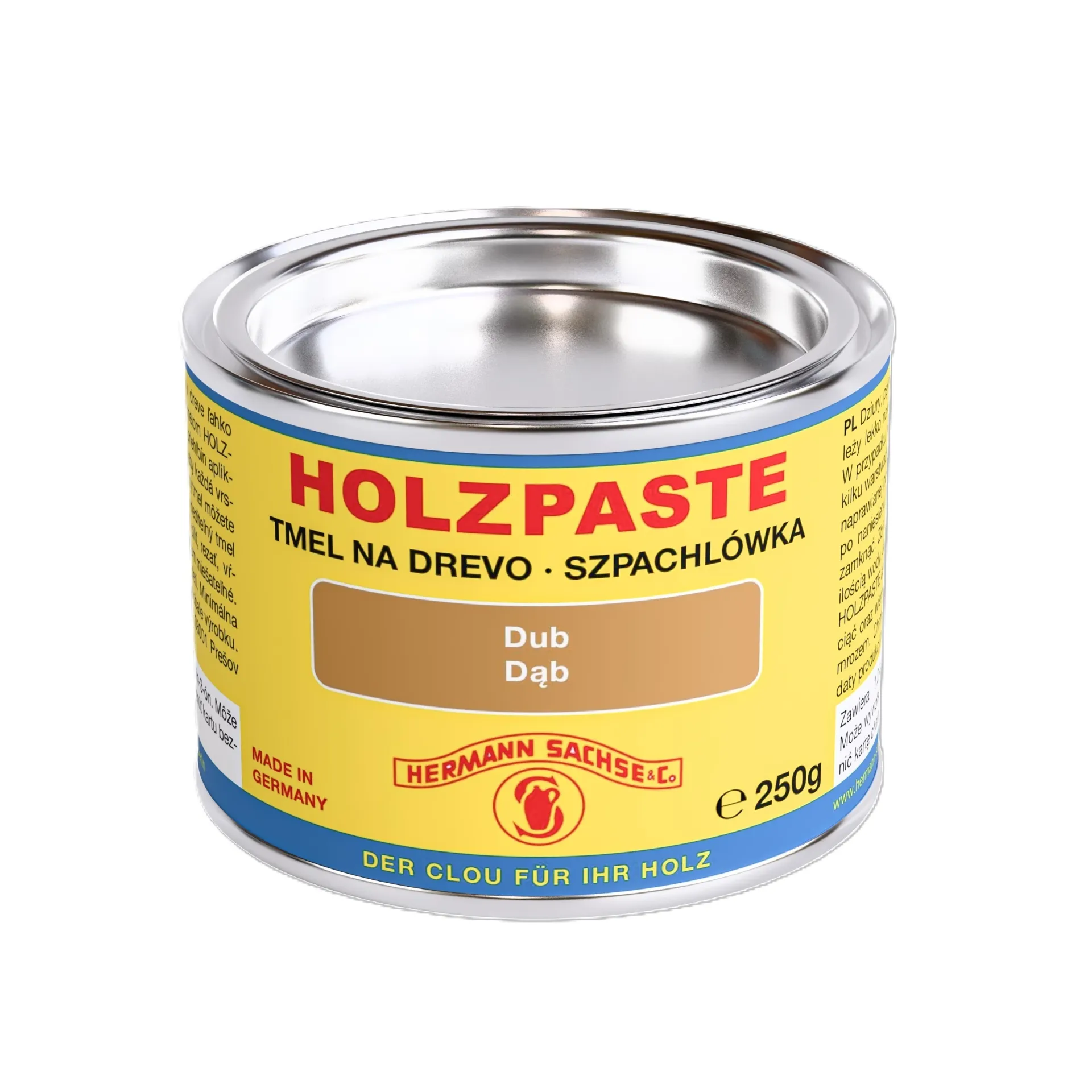 Vodou riediteľný tmel na drevo HOLZPASTE sa používa sa k vytmeleniu dierok, medzier, trhlín a priehlbín v dreve alebo dýhe. Na nábytok, dvere, podlahy, schody, obklady, okná. Veľmi ľahko sa s ním pracuje, rýchlo schne, vyplňuje veľmi dobre bez prasklín a neprepadáva sa. Povrch upravený HOLZPASTE je možné brúsiť, hobľovať, píliť, rezať, vŕtať, moriť a povrchovo upravovať olejom, lakom, lazúrou v interiéri a exteriéri. Jednotlivé odtieňe sú medzi sebou miešateľné.