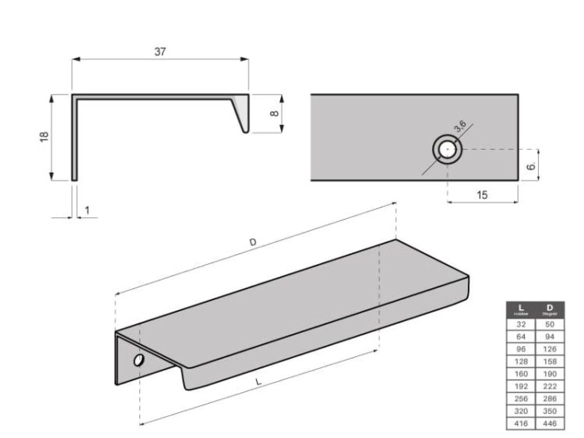 UM-494 je ideálna hranová úchytka do interiérov v industriálnom a modernom štýle. Je vyrobená z odolného hliníka, ktorý zabezpečuje odolnosť voči poškriabaniu a dlhoročnú trvácnosť. Hlboká matná čierna farba perfektne ladí s loftovými aranžmánmi. Ergonomicky zaoblená hrana robí úchytku príjemnou na dotyk a správny uhol držadla zaručuje pohodlné používanie. Vďaka pribaleným skrutkám je montáž rýchla a bezproblémová. Hranový systém upevnenia dodá vášmu nábytku čistý, minimalistický vzhľad.