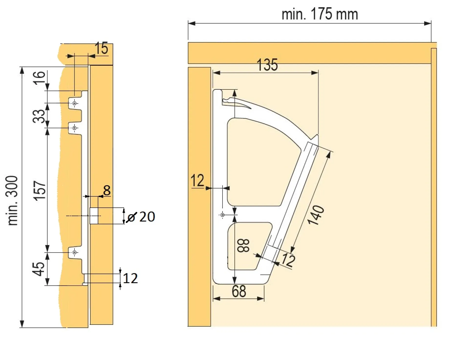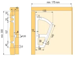 Rozmer police na topánky: hrúbka 12mm, výška 140mm, šírka podľa svetlej šírky korpusu (LW - 8mm).