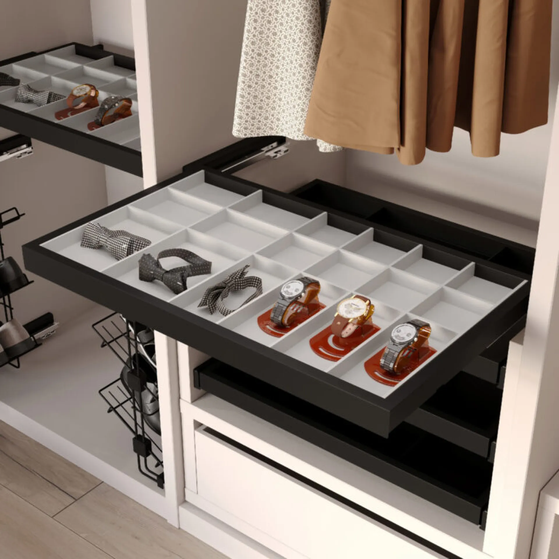 Nastaviteľná šírka výrobku. Uvedená šírka je vrátane výsuvu. K rámu je možné pridať dištančné podložky v prípade atypického korpusu.