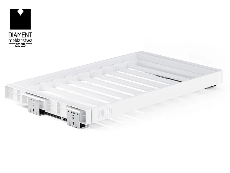 Vešiak na nohavice zo série SYMPHONY je vybavený systémom plného výsuvu, ktorý umožňuje jeho úplné vysunutie. Získate tak jednoduchý prístup ku všetkým uloženým veciam, aj k tým umiestneným vzadu. Systém plného výsuvu zabezpečuje plynulý a stabilný chod, čo výrazne zvyšuje komfort používania aj organizáciu priestoru.