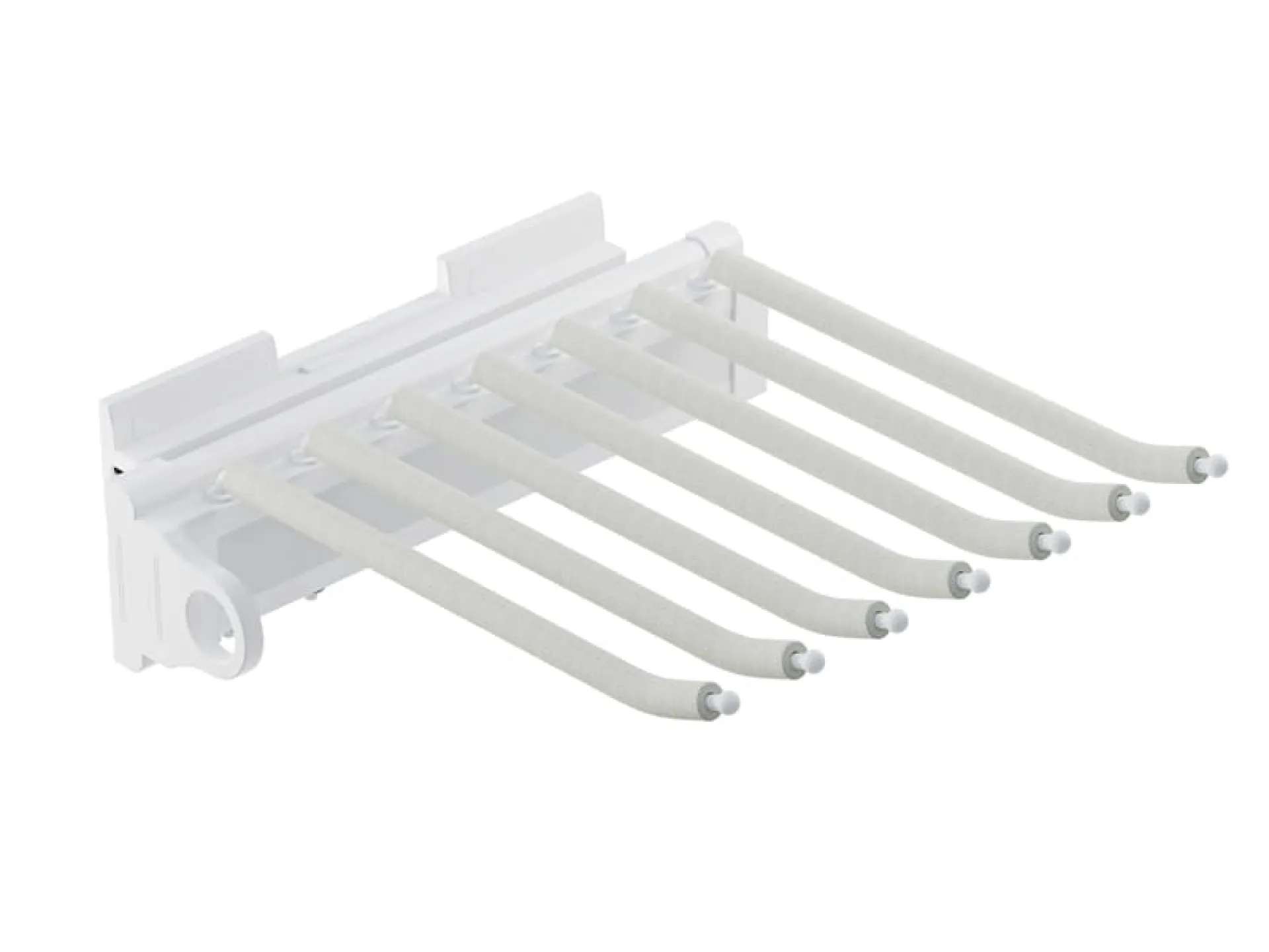 Bočný vešiak na nohavice do šatníka so 7 ramenami WB-667B SYMPHONY, biely, tichý dojazd, plný výsuv, 60 000 cyklov, protišmykový materiál