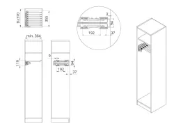 Ramená vešiaka je možné jednoducho presunúť na opačnú stranu, čo umožňuje montáž na pravú alebo ľavú stenu šatníka. Na prednej strane vešiaka sa nachádza ergonomická rukoväť, ktorá uľahčuje jeho vysunutie zo skrine.