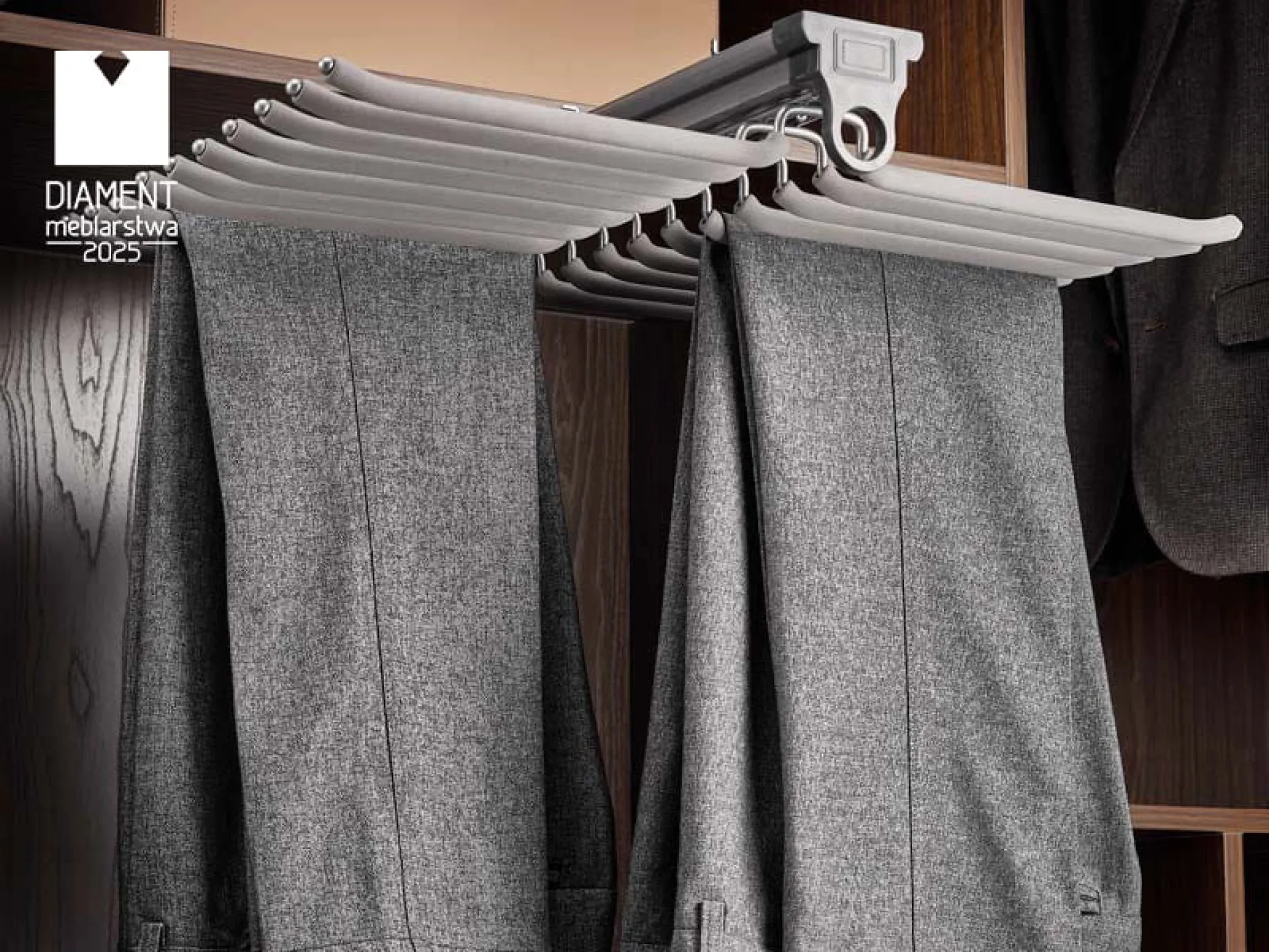 Impozantná maximálna nosnosť až 35 kg umožňuje bezpečné ukladanie nohavíc bez obáv o pevnosť konštrukcie. Testovanie pojazdového systému na 60 000 cyklov zaručuje jeho spoľahlivú prevádzku po mnoho rokov, aj pri intenzívnom používaní.