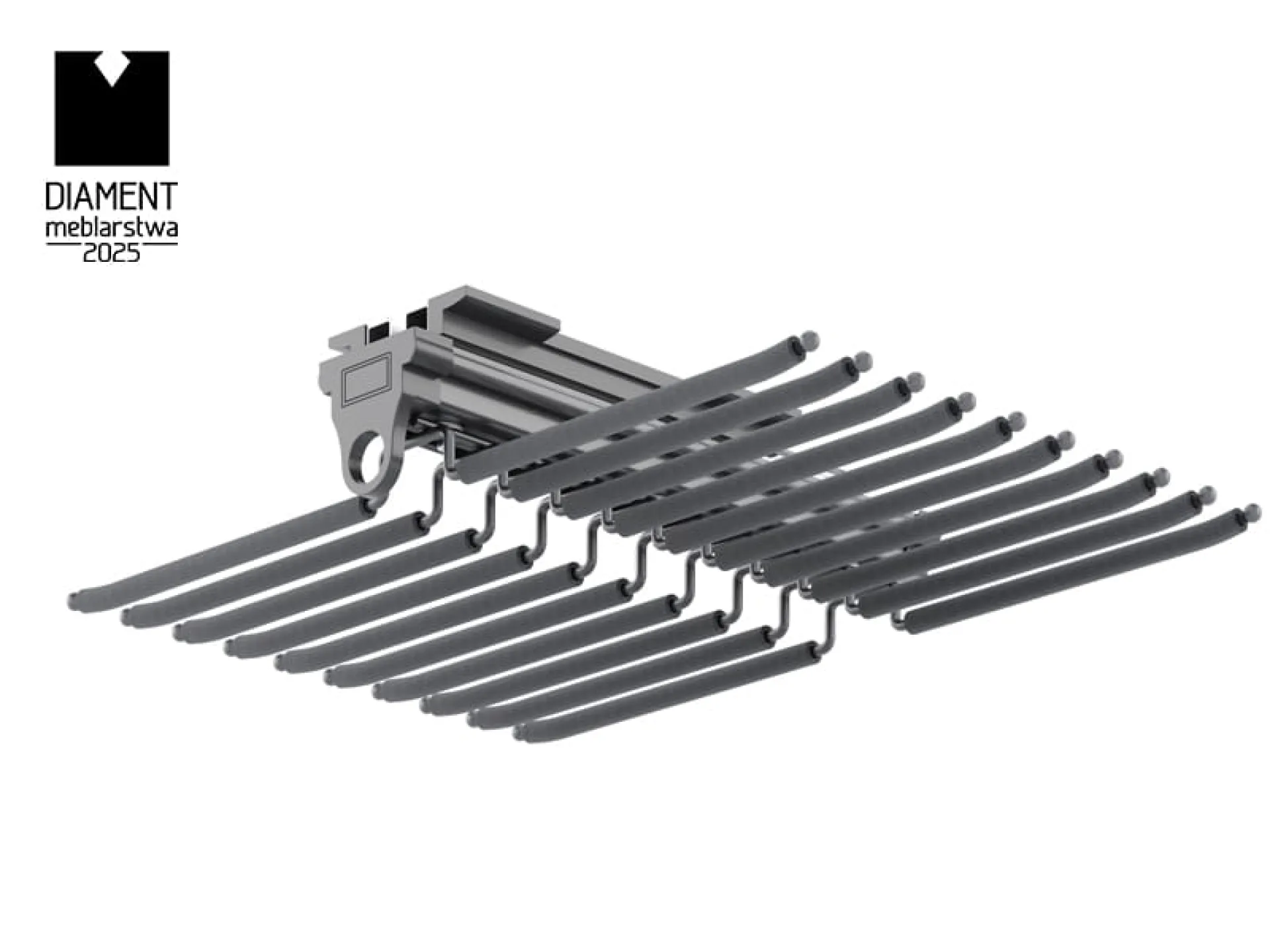 Vešiak na nohavice s 20 ramenami WB-668 SYMPHONY Antracit – Tichý dojazd, plný výsuv, 60 000 pracovných cyklov, nosnosť 35 kg