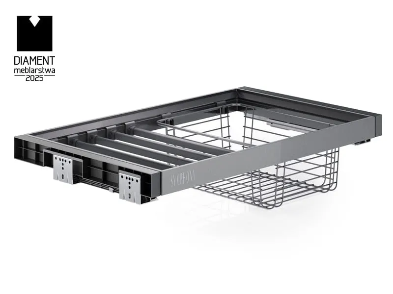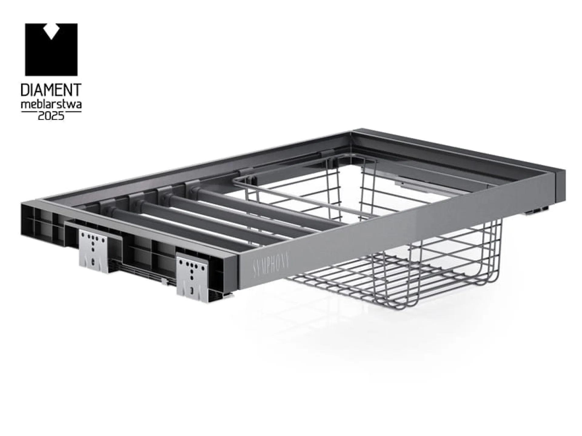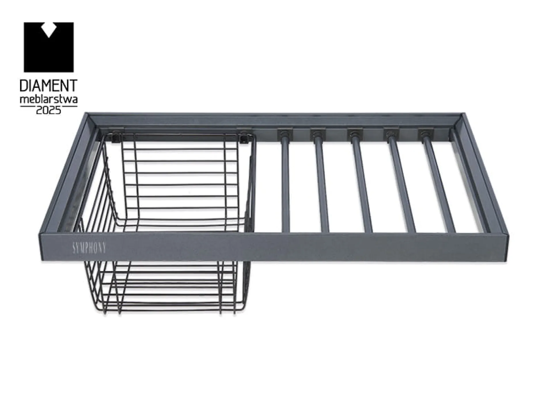 Vešiak na nohavice + kôš na oblečenie do šatníka WB-663-800 SYMPHONY Antracit – Tiché dovieranie, plný výsuv, 60 000 cyklov, spodné vedenie, do 35 kg