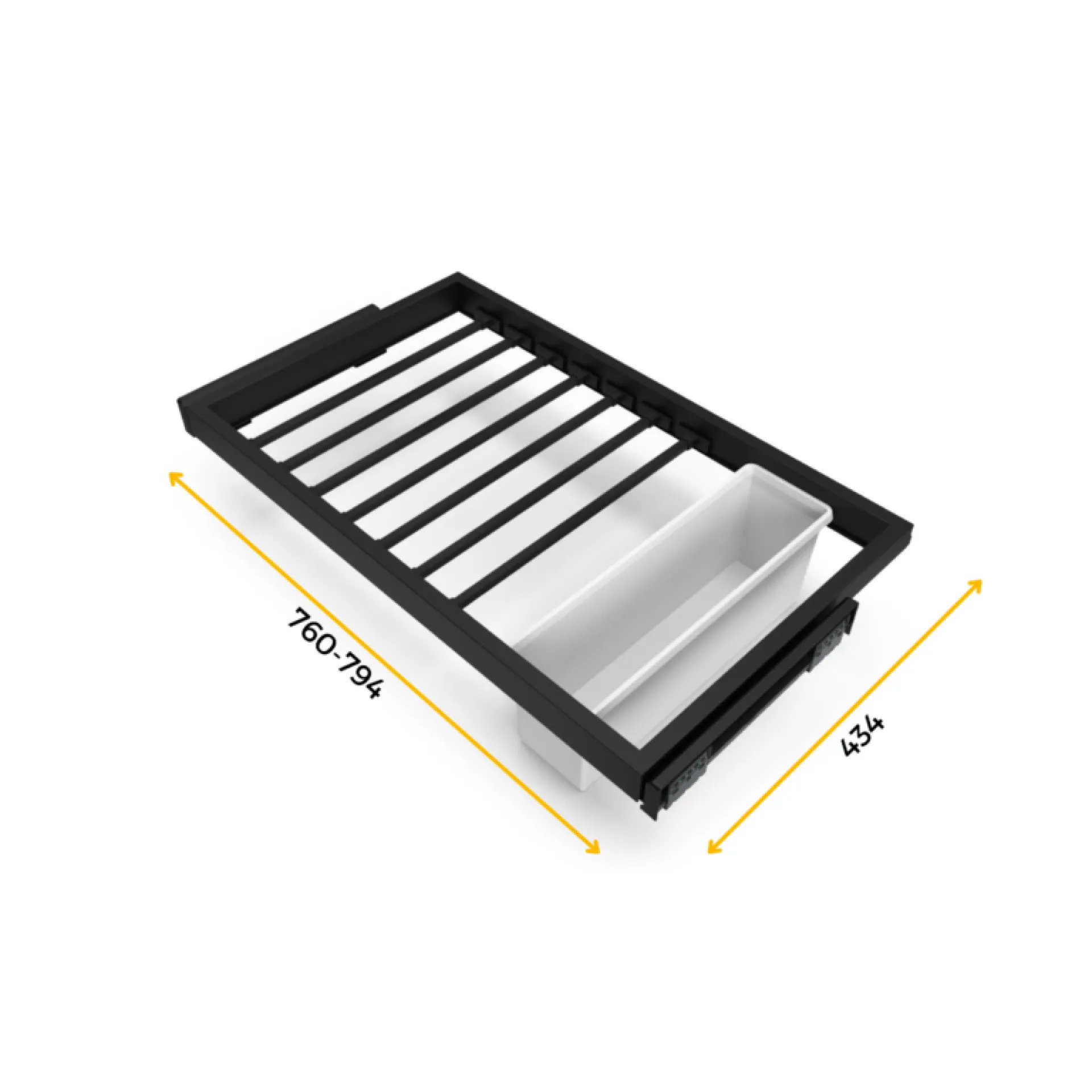 Nastaviteľná šírka výrobku. Uvedená šírka je vrátane výsuvu. K rámu je možné pridať dištančné podložky v prípade atypického korpusu. Tiež je možné pridať ďalšie rameno na nohavice.