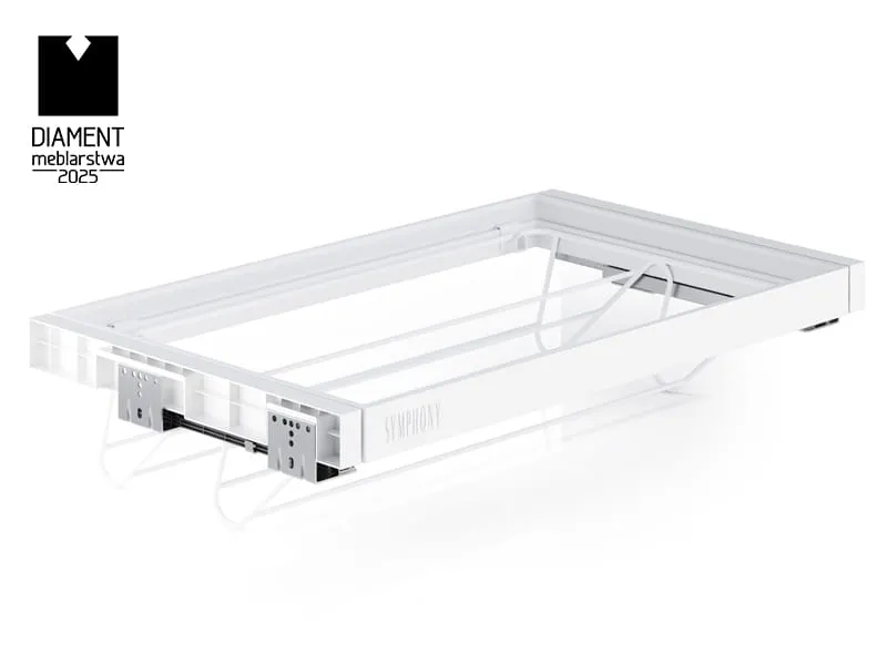 Séria SYMPHONY ponúka reguláciu šírky rámu v rozsahu 5 cm (2,5 cm z každej strany), čo umožňuje ideálne prispôsobenie rôznym veľkostiam skríň. Univerzálny úchyt umožňuje rýchlu výmenu koša za iné príslušenstvo zo série SYMPHONY.