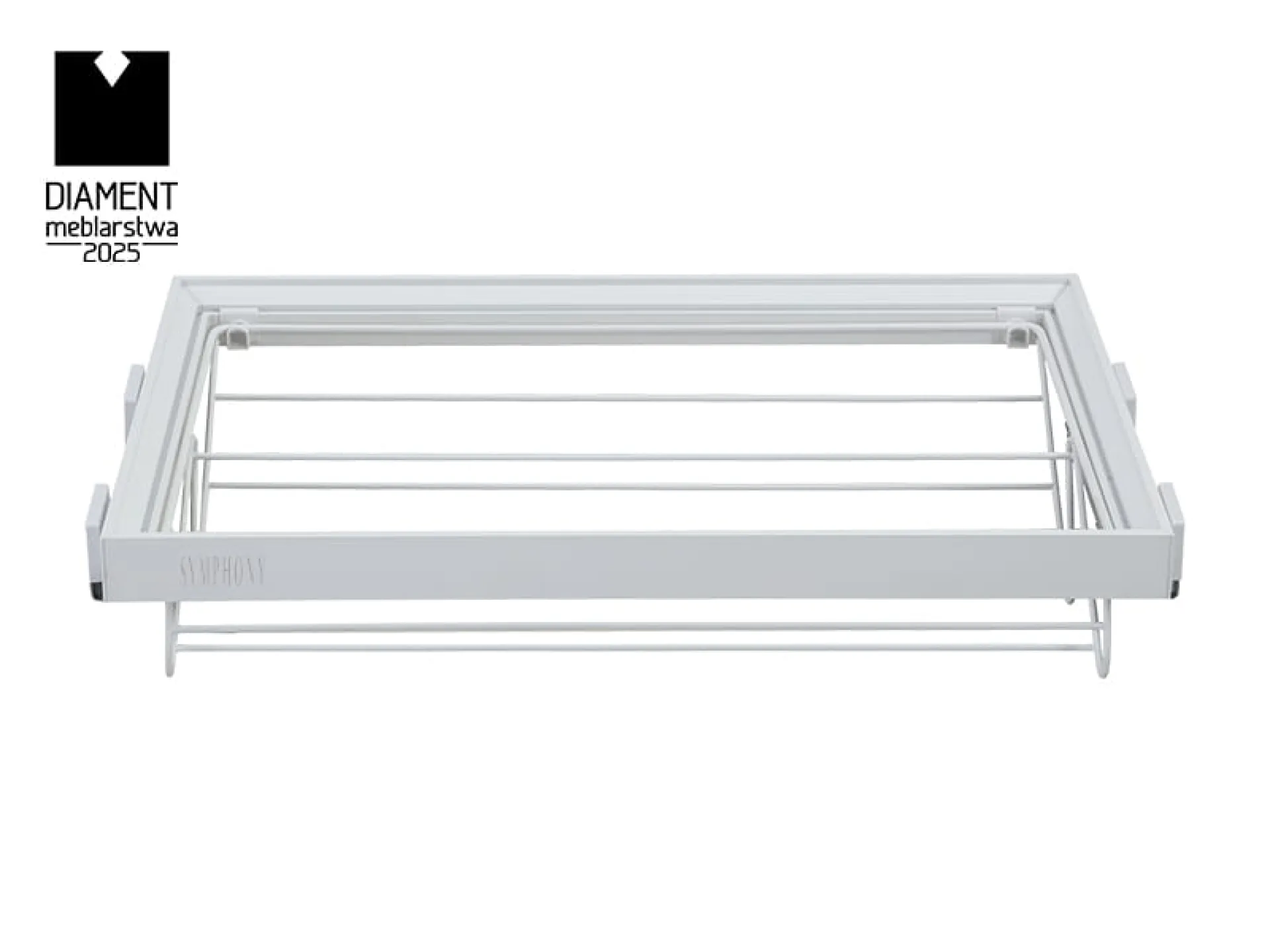 Séria SYMPHONY ponúka reguláciu šírky rámu v rozsahu 5 cm (2,5 cm z každej strany), čo umožňuje ideálne prispôsobenie rôznym veľkostiam skríň. Univerzálny úchyt umožňuje rýchlu výmenu koša za iné príslušenstvo zo série SYMPHONY.