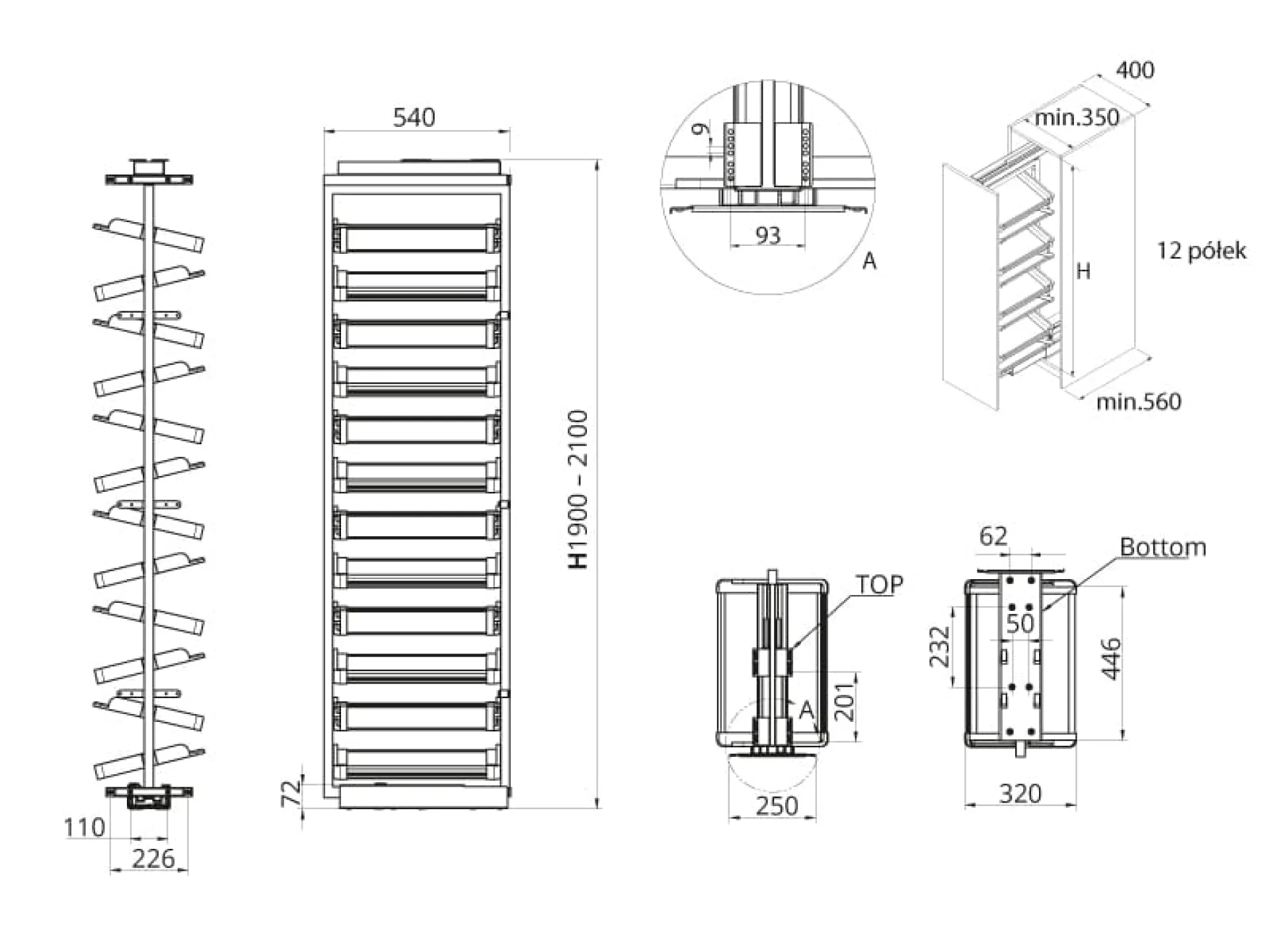 ☛ Počet políc: 12