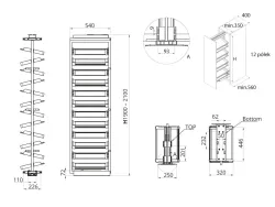 Výsuvný kôš na topánky do šatníka WB-681 (12 políc), antracit – zabezpečí maximálny poriadok, plný výsuv, tichý dojazd