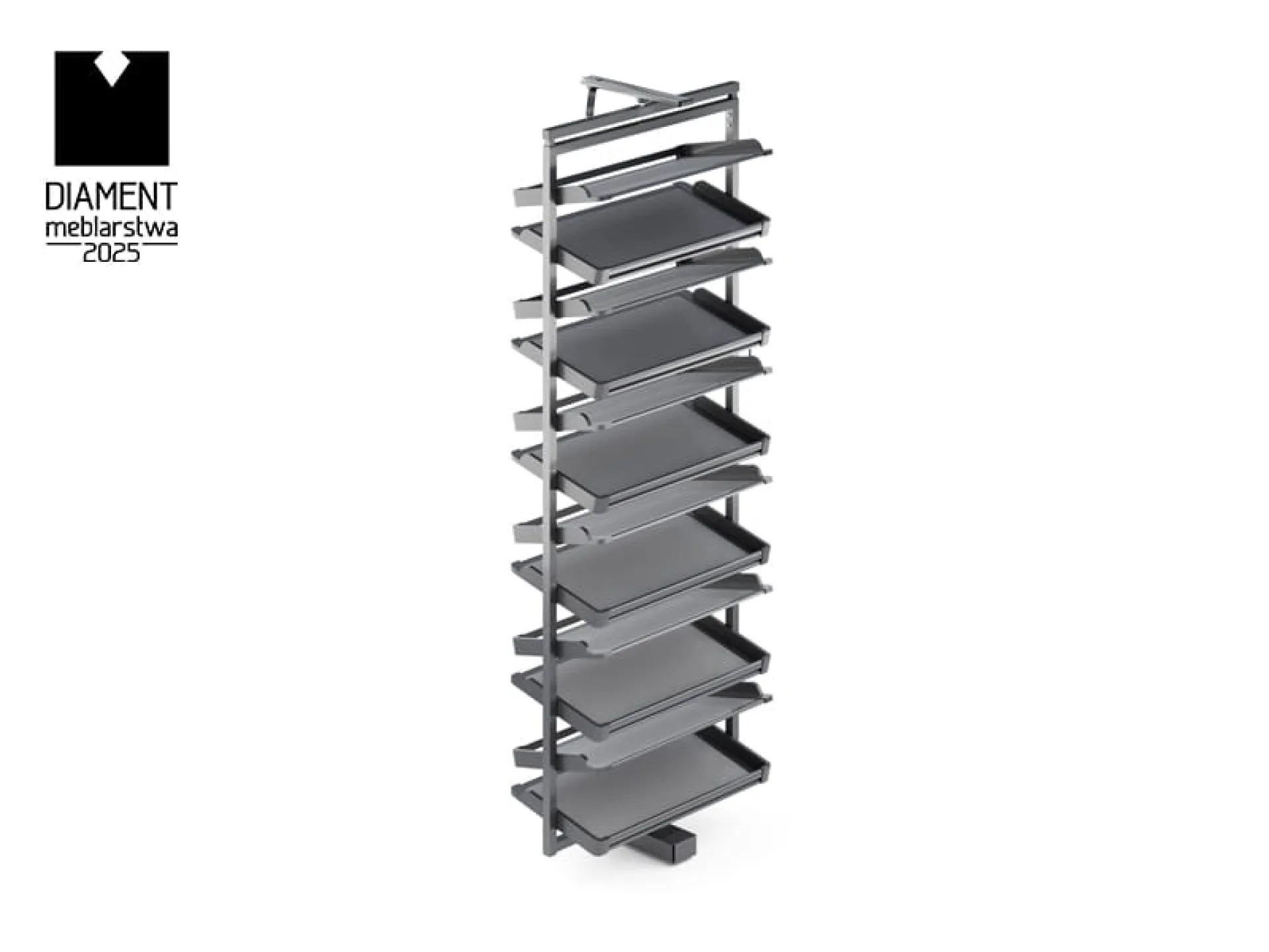 Otočný kôš na topánky do šatníka WB-671 (12 políc) Antracit – Otočenie 360°, ľahký prístup k obuvi, plný výsuv