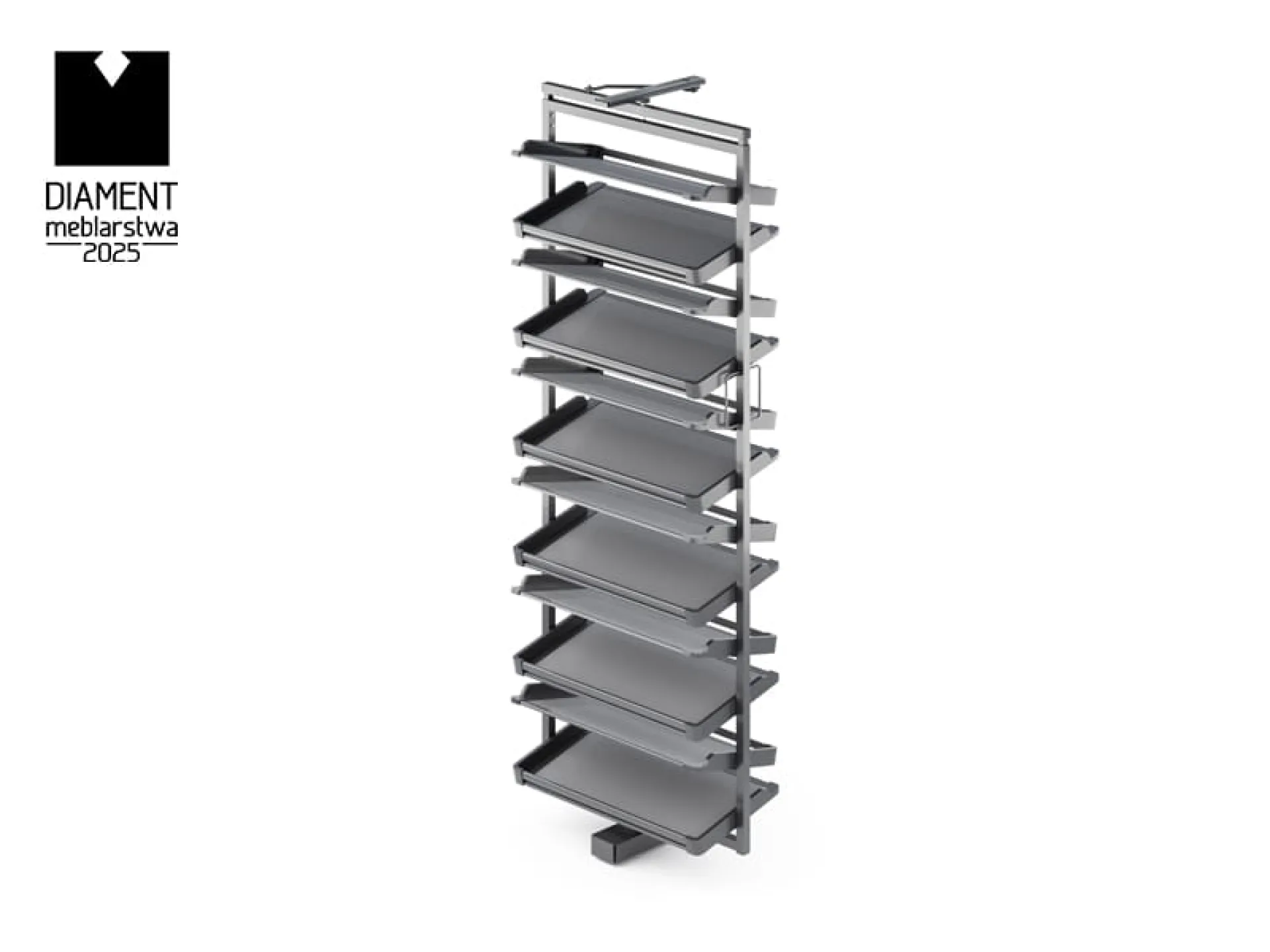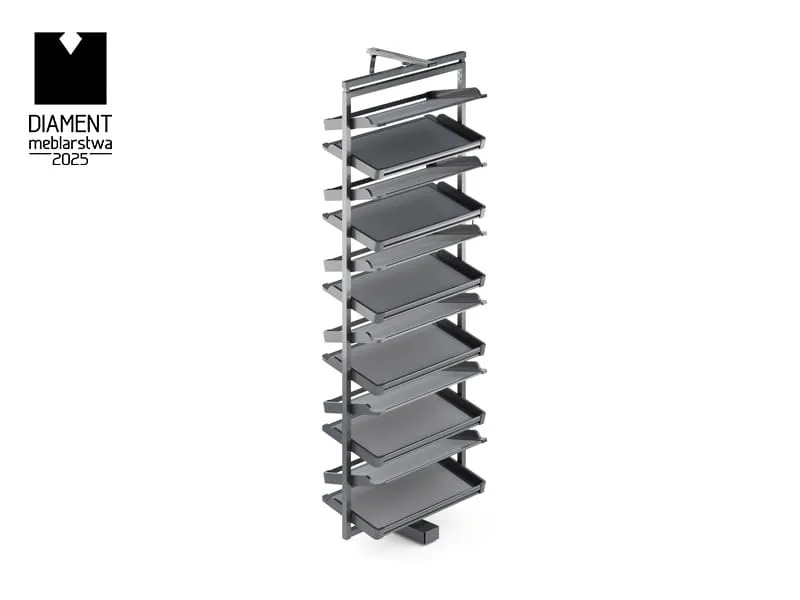 Funkcia plného výsuvu poskytuje jednoduchý prístup ku všetkým policiam. Celý kôš je možné úplne vysunúť, čo uľahčuje organizáciu aj udržiavanie poriadku v obuvi. Plný výsuv umožňuje rýchly prehľad o celej kolekcii a jednoduchý výber tej správnej páry. Tento systém je mimoriadne užitočný najmä v hlbokých šatníkoch, kde je prístup k zadným policiam sťažený.