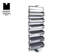 Každá polica je umiestnená pod uhlom pre maximálne pohodlie pri používaní. Takéto usporiadanie umožňuje lepšiu viditeľnosť topánok aj jednoduchší prístup k nim, čo výrazne uľahčuje výber správnej páry. Vďaka bezpečnému vyhotoveniu zostáva obuv stabilne na svojom mieste bez rizika vypadnutia.
