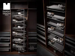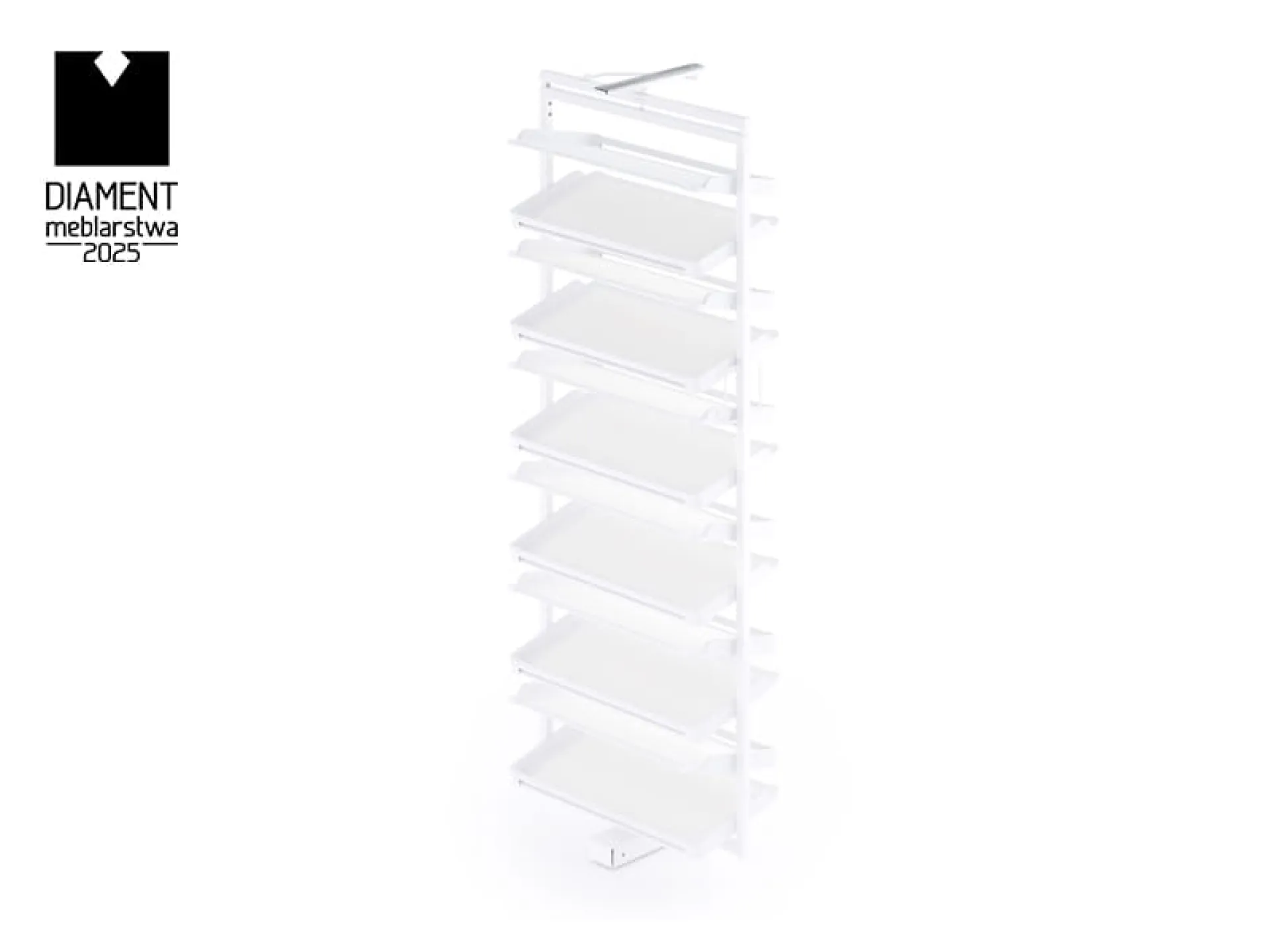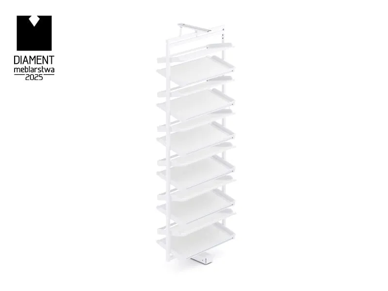 Funkcia plného výsuvu poskytuje jednoduchý prístup ku všetkým policiam. Celý kôš je možné úplne vysunúť, čo uľahčuje organizáciu aj udržiavanie poriadku v obuvi. Plný výsuv umožňuje rýchly prehľad o celej kolekcii a jednoduchý výber tej správnej páry. Tento systém je mimoriadne užitočný najmä v hlbokých šatníkoch, kde je prístup k zadným policiam sťažený.