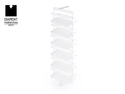 Každá polica je umiestnená pod uhlom pre maximálne pohodlie pri používaní. Takéto usporiadanie umožňuje lepšiu viditeľnosť topánok aj jednoduchší prístup k nim, čo výrazne uľahčuje výber správnej páry. Vďaka bezpečnému vyhotoveniu zostáva obuv stabilne na svojom mieste bez rizika vypadnutia.