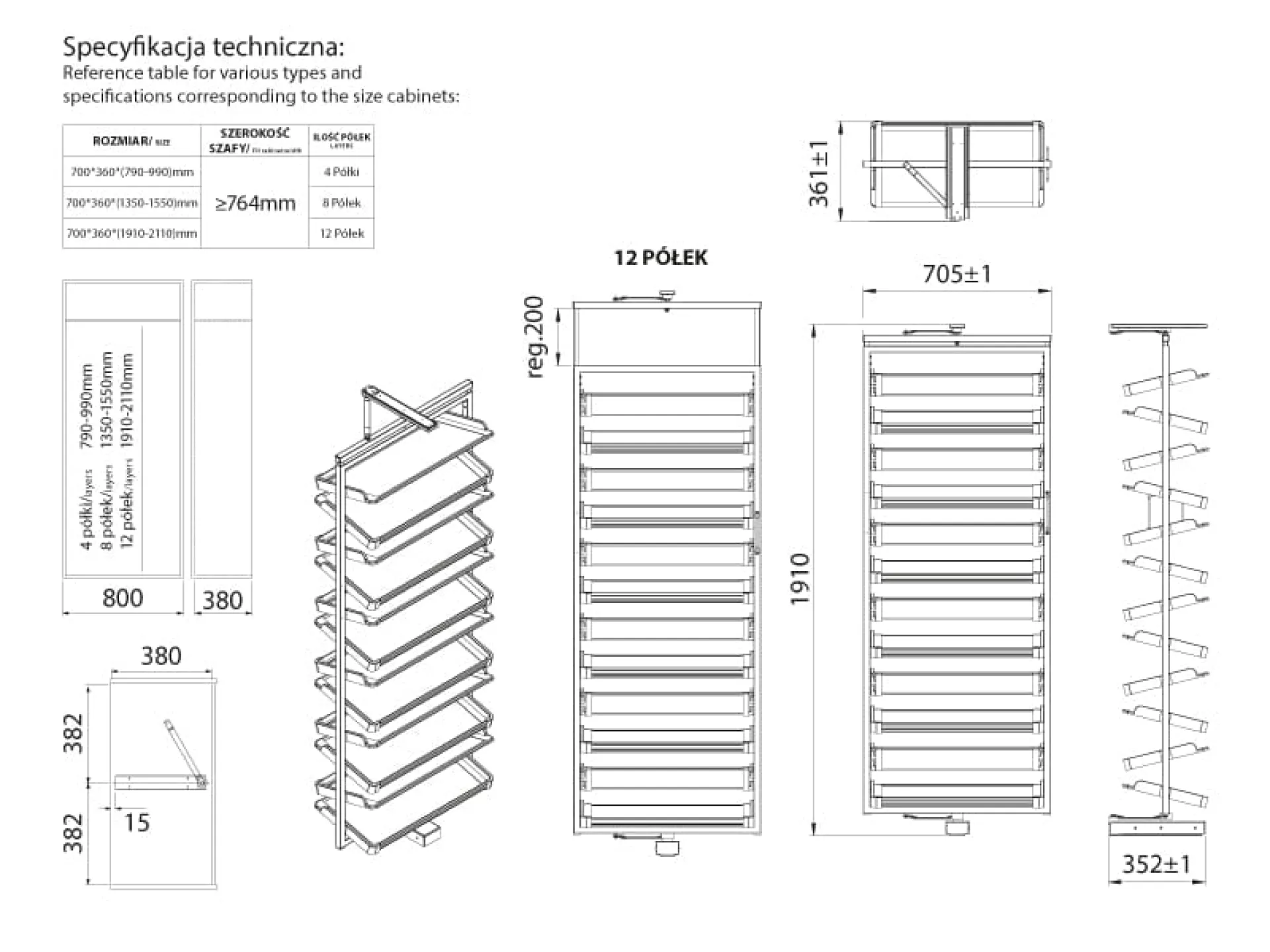 Plné otočenie koša o 360° uľahčuje prístup ku každej polici. Nemusíte siahať hlboko do vnútra skrine – stačí otočiť policu a okamžite máte prístup ku každej páre topánok. Organizácia a výber vhodnej obuvi nikdy nebol jednoduchší!