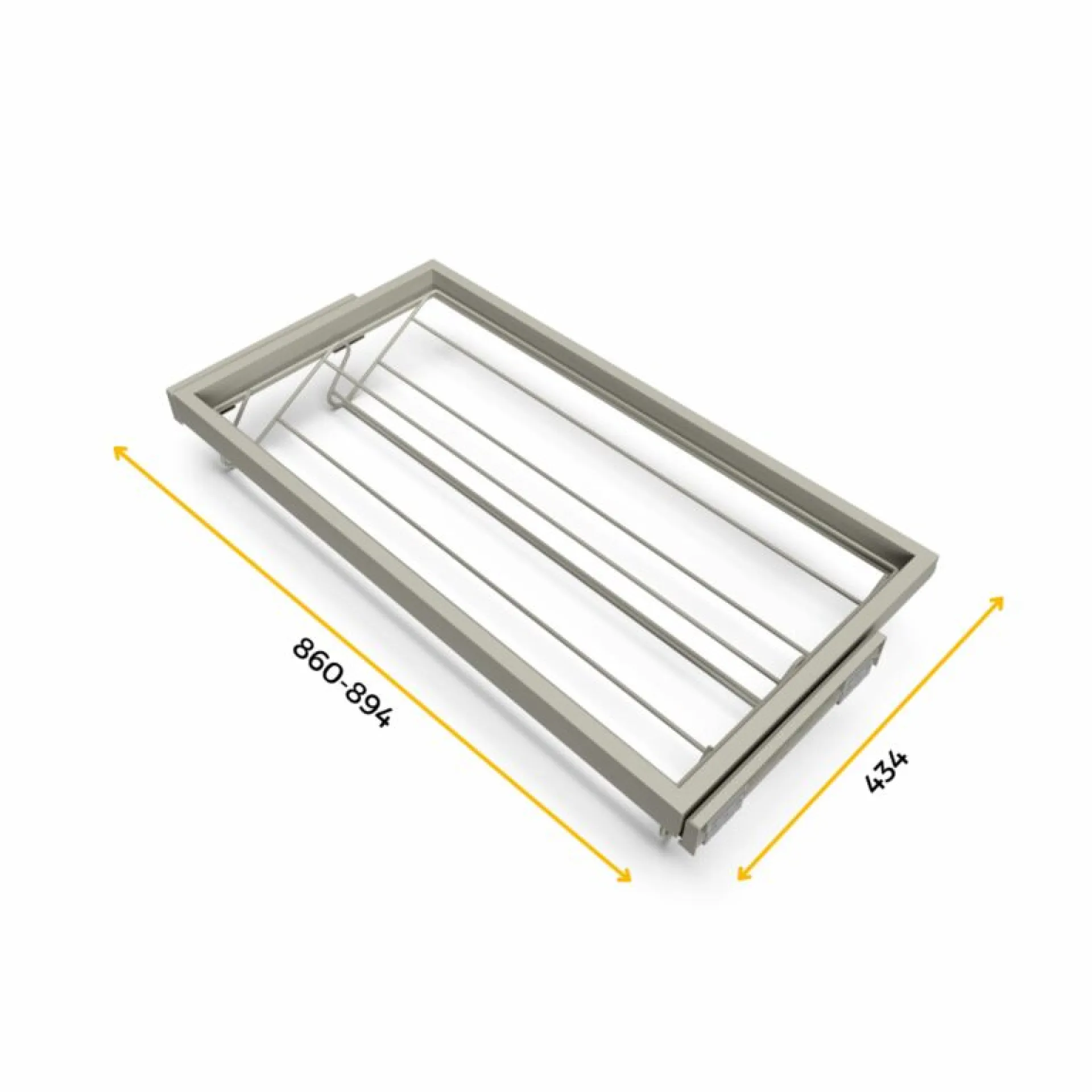 Nastaviteľná šírka výrobku. Uvedená šírka je vrátane výsuvu. K rámu je možné pridať dištančné podložky v prípade atypického korpusu.