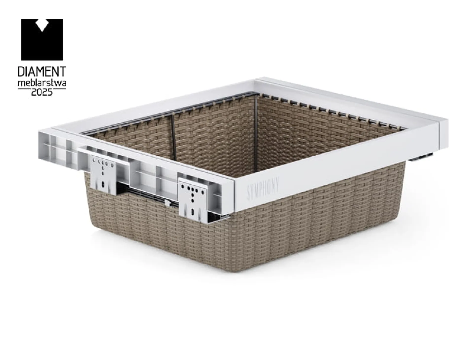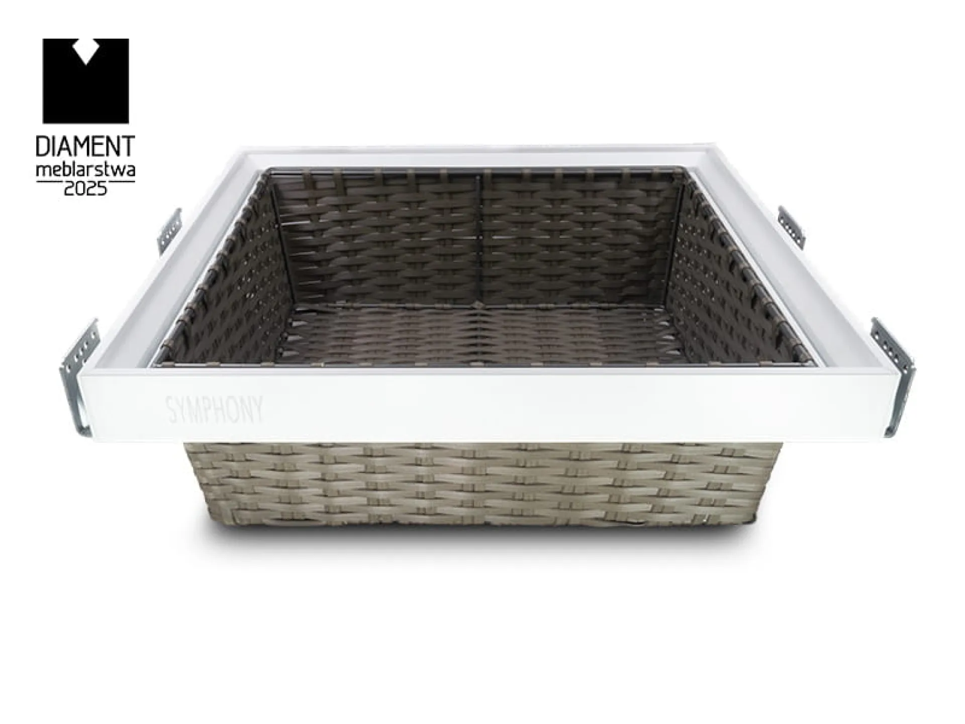 Univerzálny úchyt umožňuje rýchlu výmenu koša a jeho zamenenie s inými doplnkami zo série SYMPHONY, čím sa zvyšuje funkčnosť a ponúka široká škála možností prispôsobenia interiéru skrine.