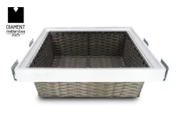 Ratanový kôš do šatníka WB-661-600 SYMPHONY L-455 H-170 (biely rám) – Tichý dojazd, plný výsuv, nosnosť 35 kg