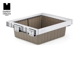 Ratanový kôš je vybavený systémom plného výsuvu, ktorý umožňuje úplné vysunutie koša zo skrine alebo šatníka. Tým získate ľahký prístup ku všetkým uloženým veciam, aj k tým na samom konci koša. Systém plného výsuvu zabezpečuje plynulý a stabilný chod, čo zvyšuje komfort používania a uľahčuje organizáciu priestoru.