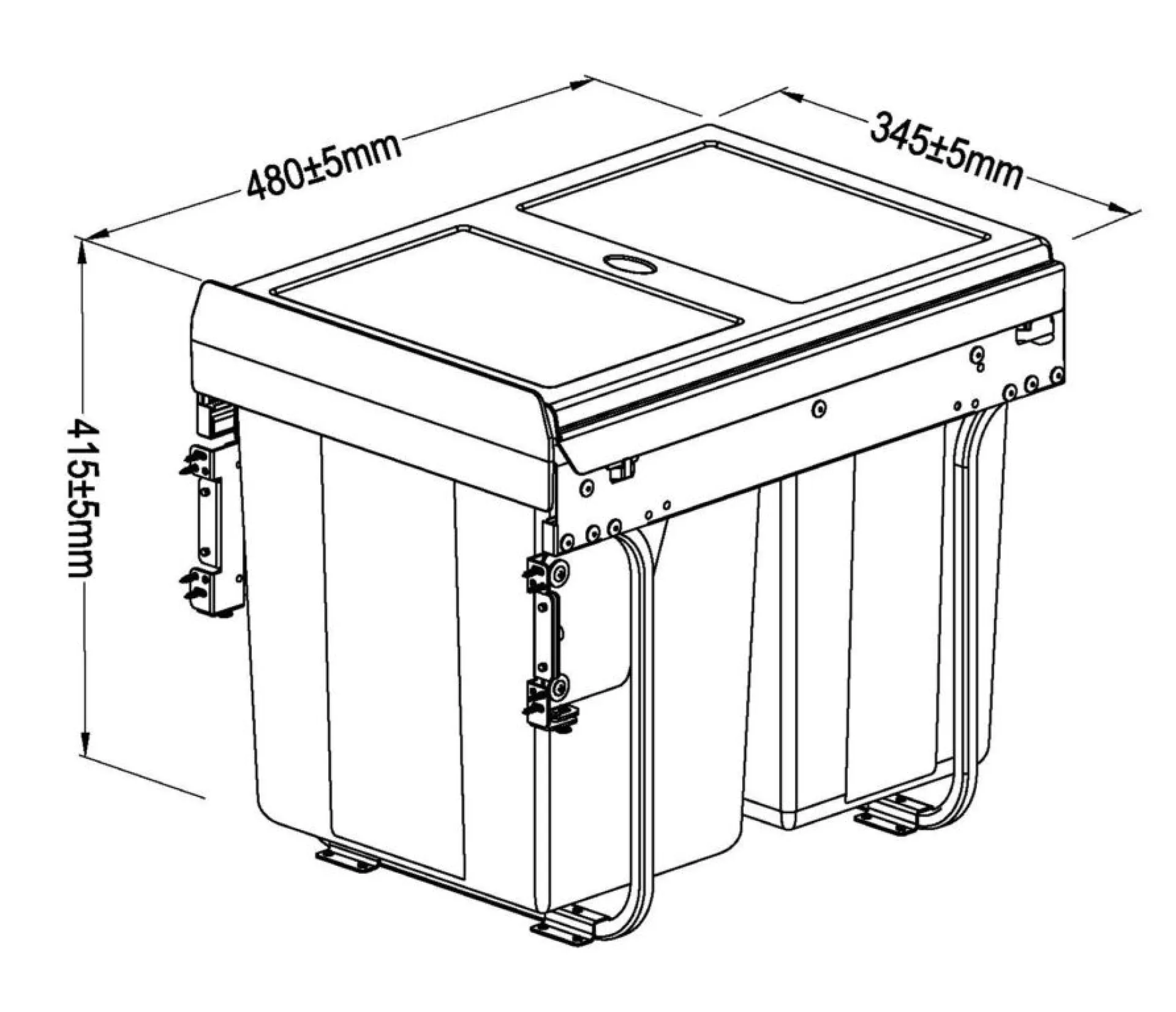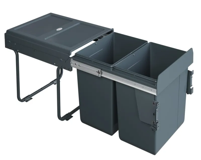 Smetný koš od českej značky Wireli. Minimálna šírka dvierok 400 mm. Montáž do dna. 2x 20L nádoba. Kôš je na ložiskových výsuvoch.