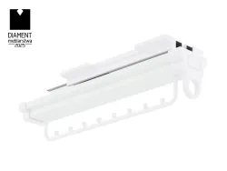 Výsuvný vešiak na oblečenie WB-669 zo série SYMPHONY je ideálnym riešením na organizáciu priestoru vo vašej domácnosti. Vešiak je vybavený 8 zarážkami, ktoré umožňujú pohodlné ukladanie oblečenia a zabezpečujú, že zostane hladké a v perfektnom stave. Moderný dizajn a pevná konštrukcia sa skvele hodia do každého interiéru, ktorému dodajú elegantný a svieži vzhľad. Ergonomická okrúhla rukoväť vpredu uľahčuje vysúvanie vešiaka.